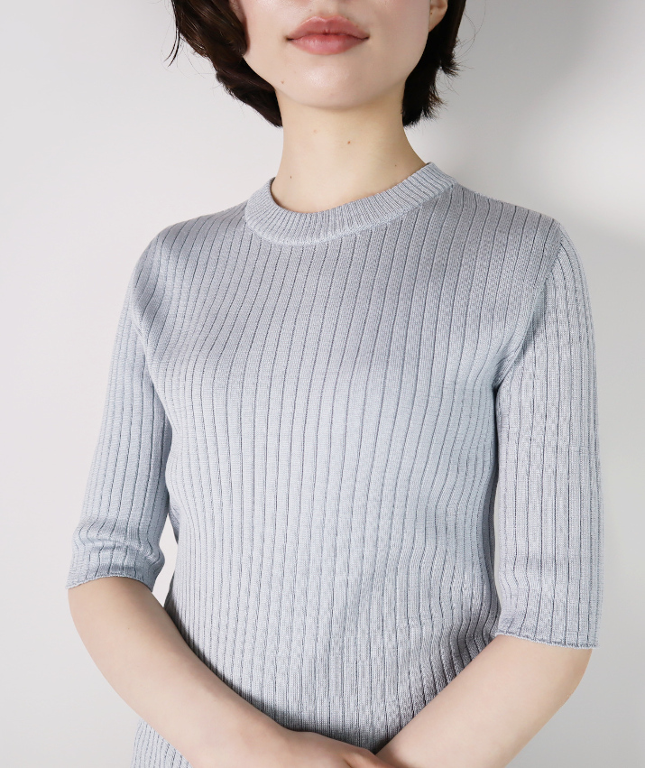 綿レーヨンシルクランダムリブポロニット ¥11,000(税込)