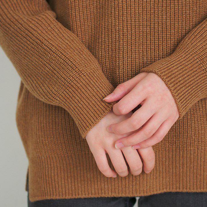 ウォッシャブルシルク100%リブスクエアネックプルオーバー