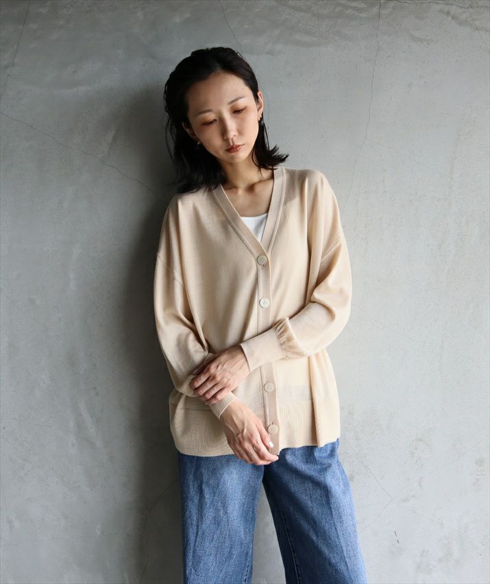 秋のはじまりにぴったりなレイヤードしやすい薄手のカーディガンです。