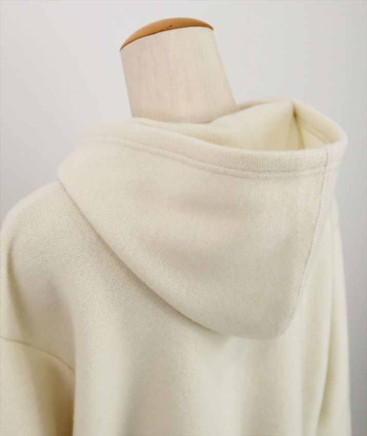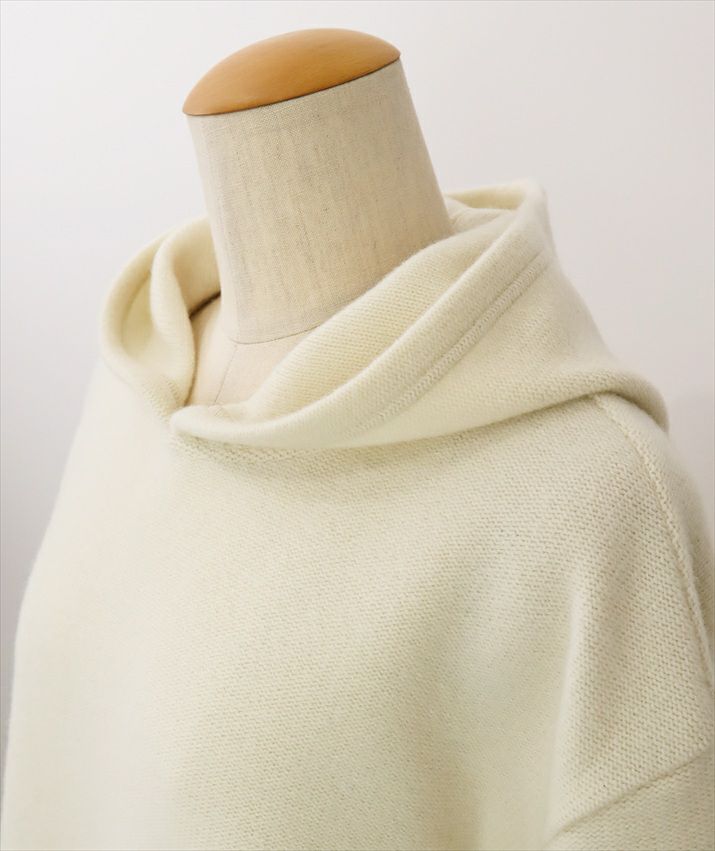 一見カジュアルなフーディをあえてカシミヤ入りニットテキスタイルで仕立てることで、大人にふさわしい気品を纏ったアイテムに。