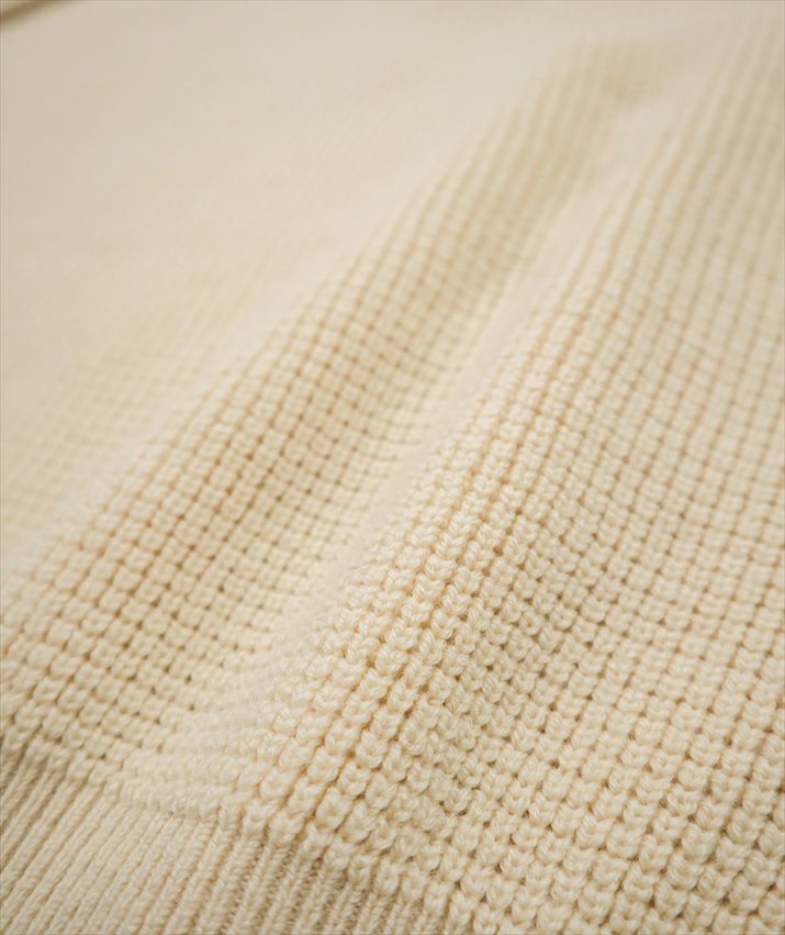 7ゲージのワッフル編みで編み立て、立体感と程よいボリュームのある表情に仕上げました。