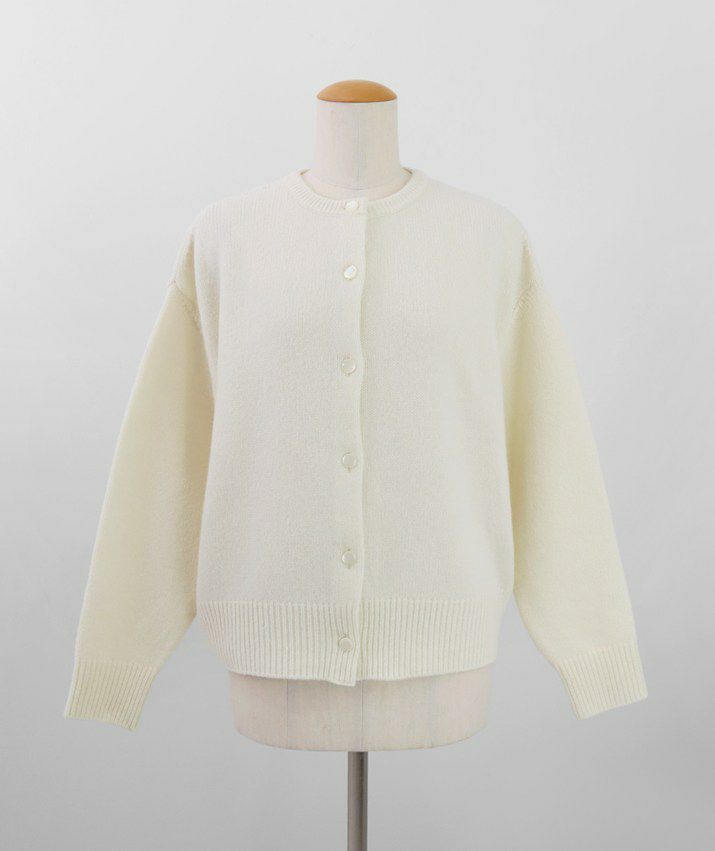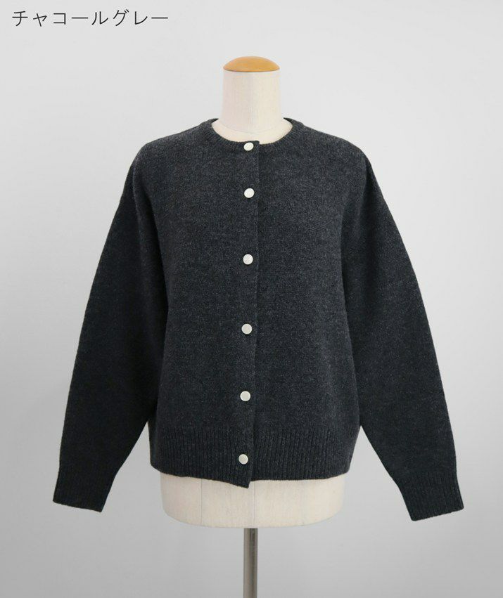 クラシカルなクルーネックデザインにパール調ボタンをあしらい、上品さと華やかさをプラスしました。