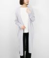 編地は16ゲージの天竺編み。薄手でやや透け感があります。しなやかで細かく均一な編み目で、一目見るだけで上質感が伝わる仕上がりに。長めの着丈が気になる部分をカバーしつつ、縦ラインですっきりと見せてくれます。無駄をそぎ落としたシンプルで洗練されたデザインで、流行に左右されず、長く着られる一枚です。