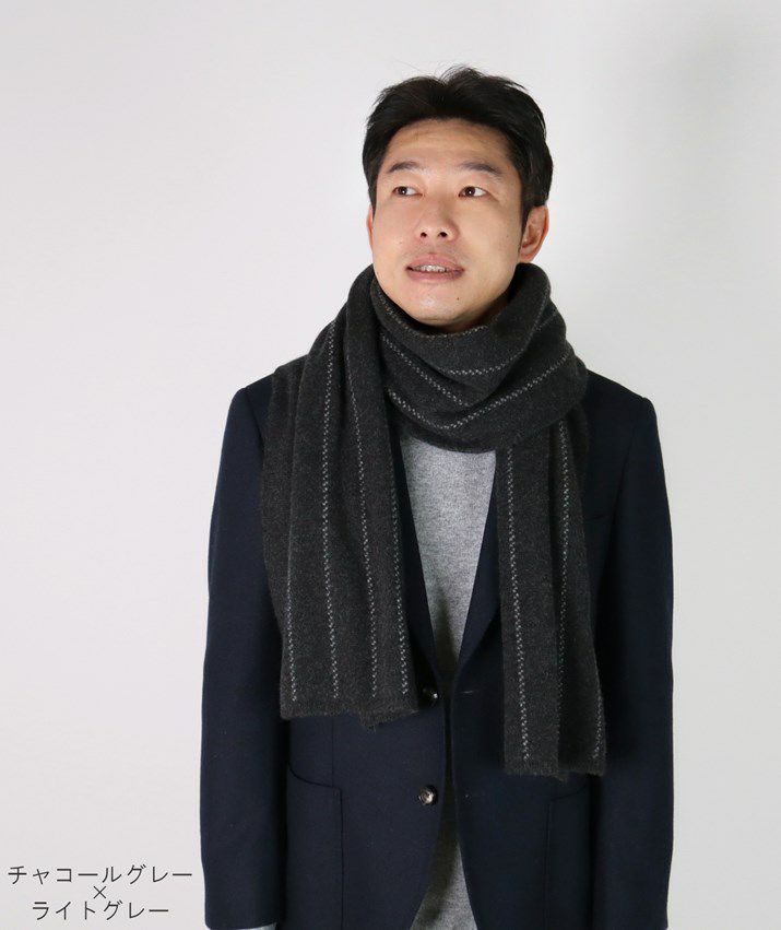 ・カシミヤ100%素材を使用した、軽くてあたたかいストライプ柄マフラー