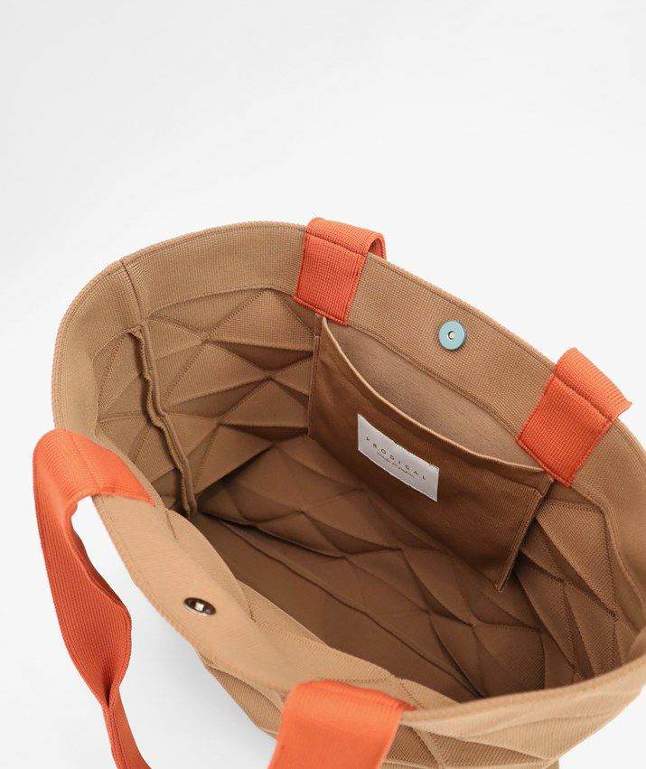 ・形はシンプルなトートバッグですが、立体感のあるファブリックが目を引くから存在感抜群