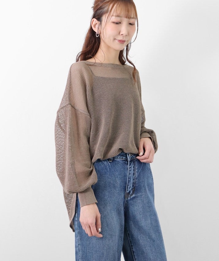 リネンメッシュ編みカーディガン
