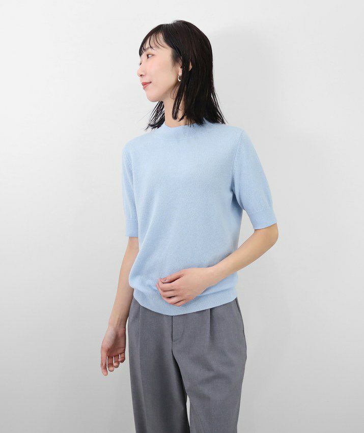 編地は12ゲージの天竺編み。アクセサリーが映える上品なハイネックは、程よい高さで顔まわりをすっきり見せてくれます。Tシャツのように気軽に着られて、気温差のある季節の変わり目にも重宝します。無駄をそぎ落としたシンプルで洗練されたデザインで、流行に左右されず、長く着られる一枚です。