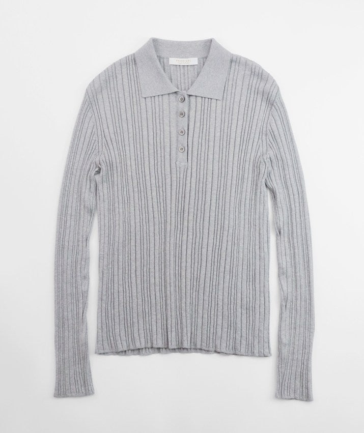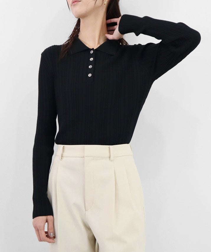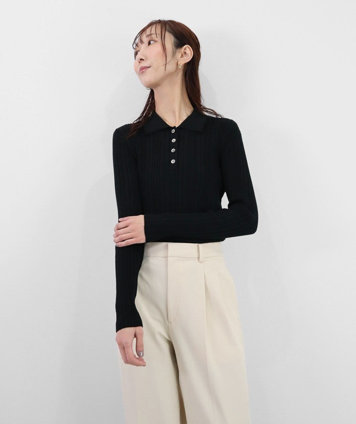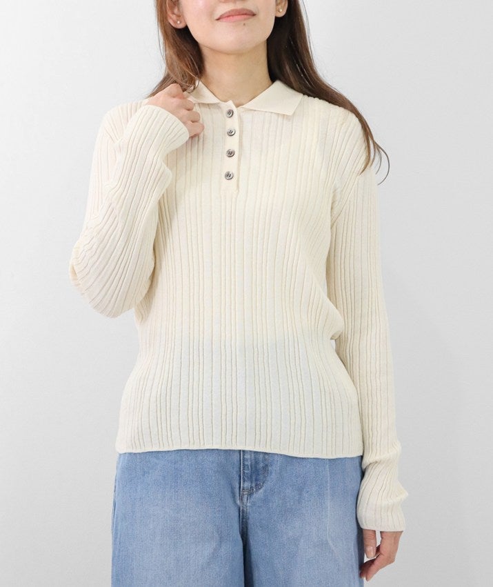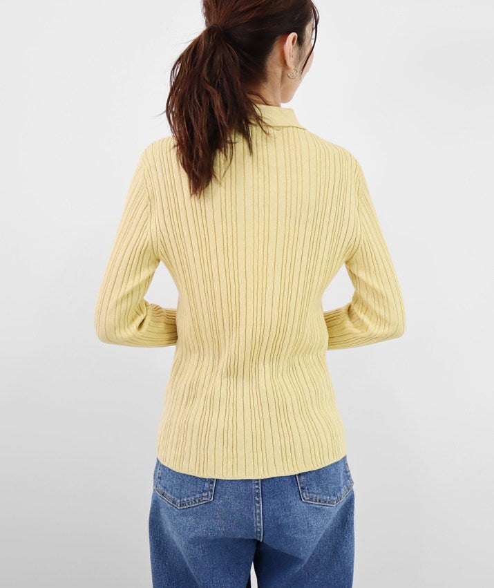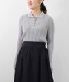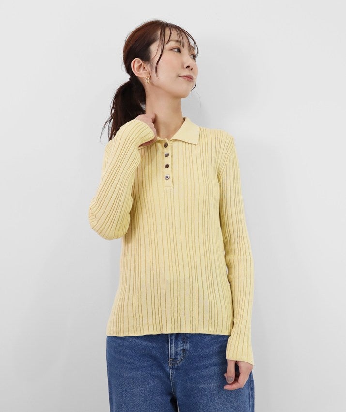 16ゲージで編み立てた、表情豊かなランダムリブのポロニット。襟付きのデザインがきちんと感を添えつつ、カジュアルにも着まわせる一枚です。身体のラインを拾いすぎない、ほどよいフィット感とやわらかな着心地に仕上げました。インでもアウトでもバランスよく決まる丈感で、ボトムスを選ばず幅広いコーディネートに活躍します。
