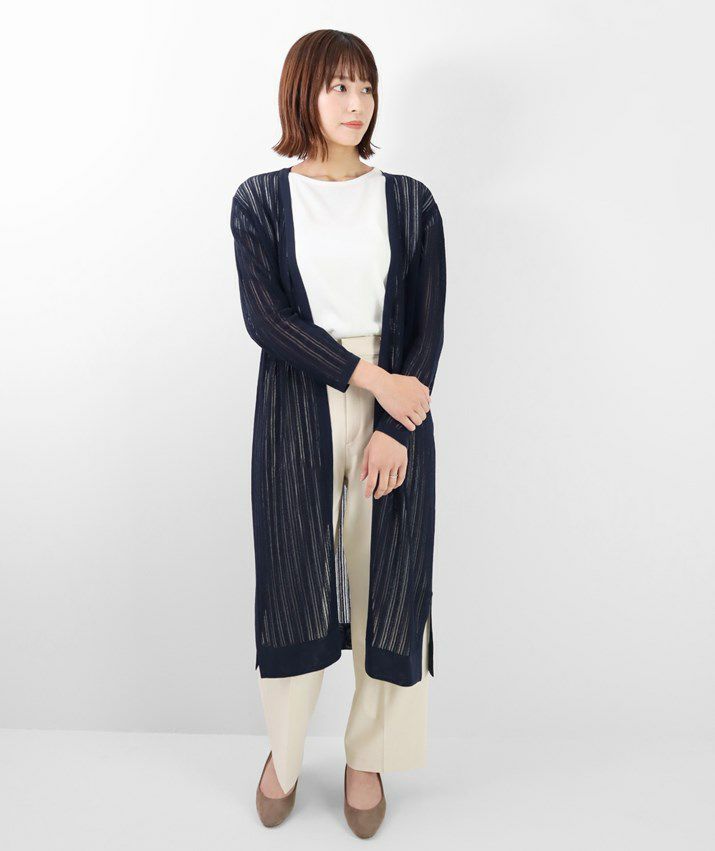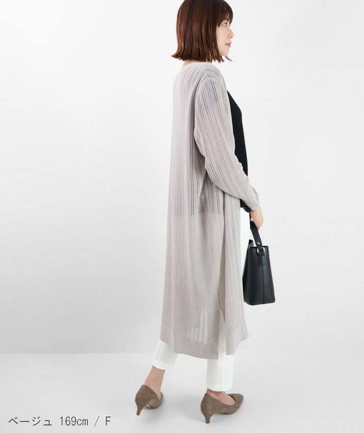 透かし柄ロングカーディガン