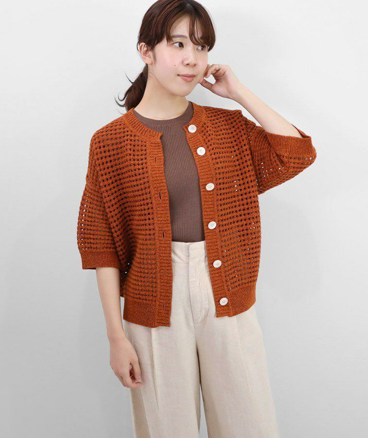 リネンメッシュ編みカーディガン