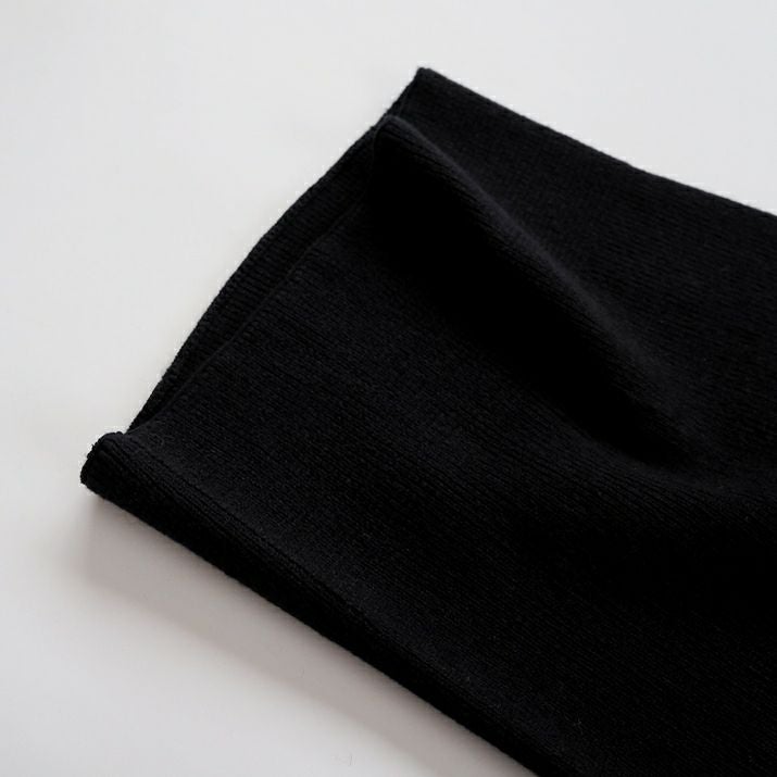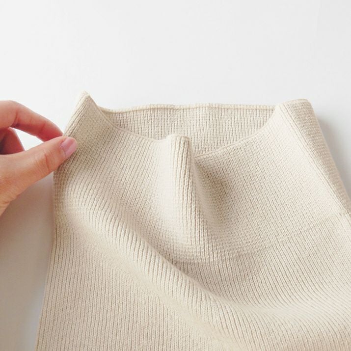 ホールガーメント®で編み立てられているため、縫い目のごろつきがなくストレスフリーな履き心地。バスト下からウエストまわりにはゴム糸を一緒に編み込むことで、ぴったりフィットしながらお腹をやさしく包み込みます。優れた伸縮性で締め付け感が少なく、長時間の着用でも快適です。裾はレイヤードで見えてもサマになるシンプルな仕上げで、もたつかずすっきりとした印象に。