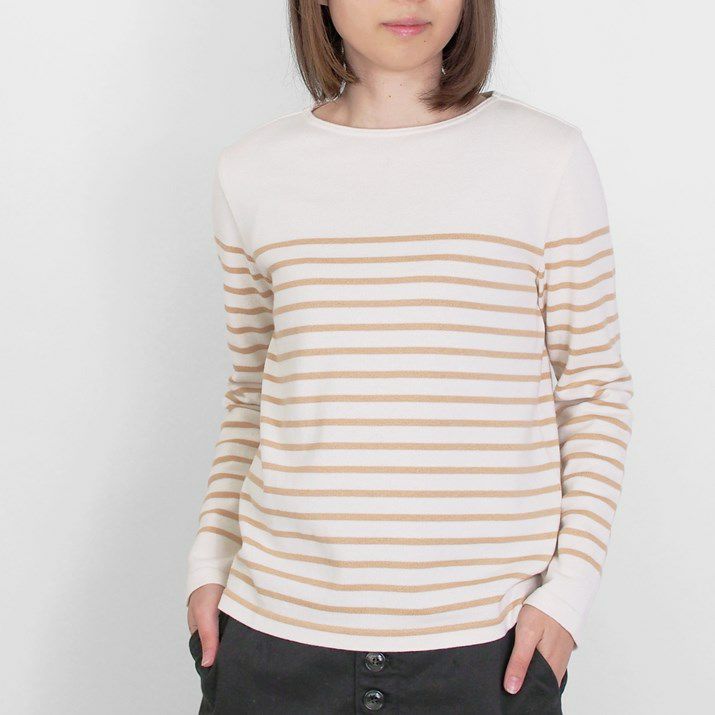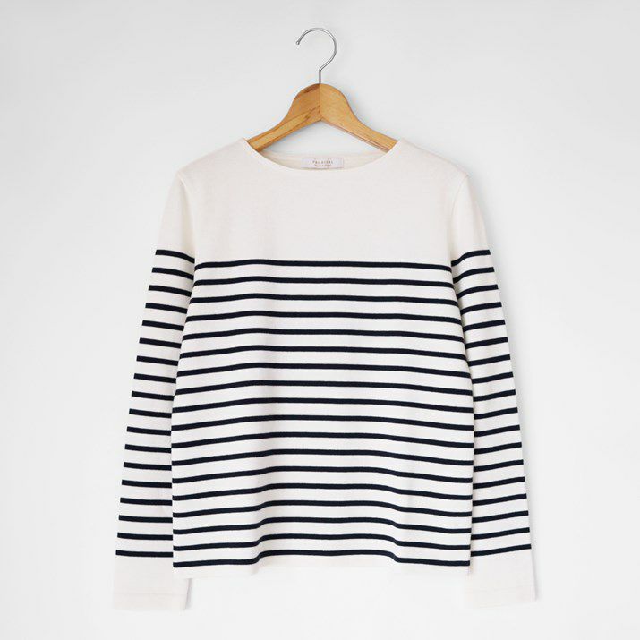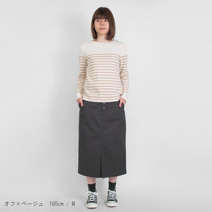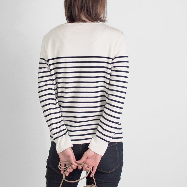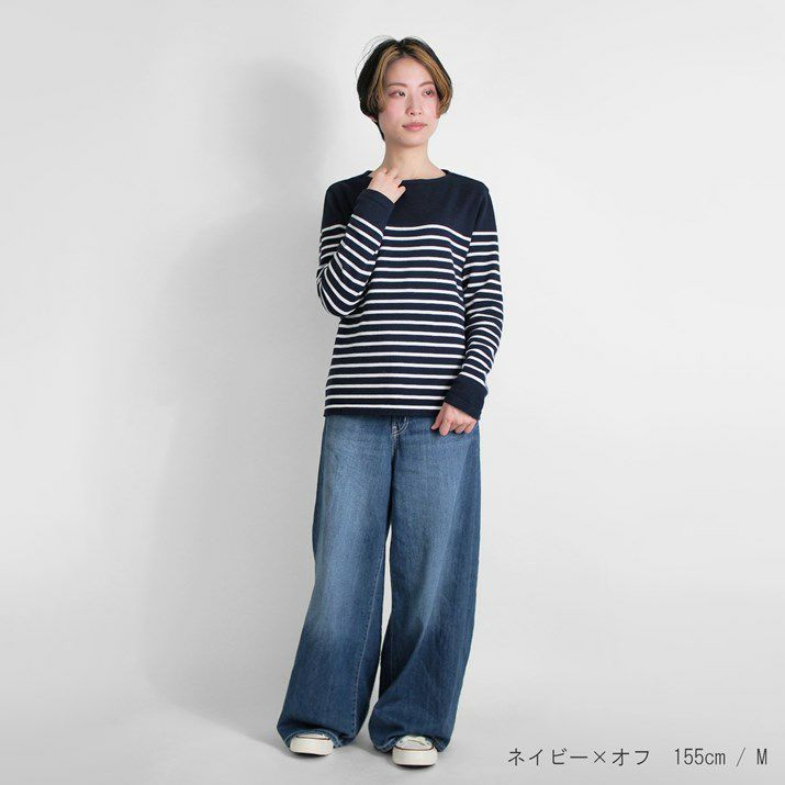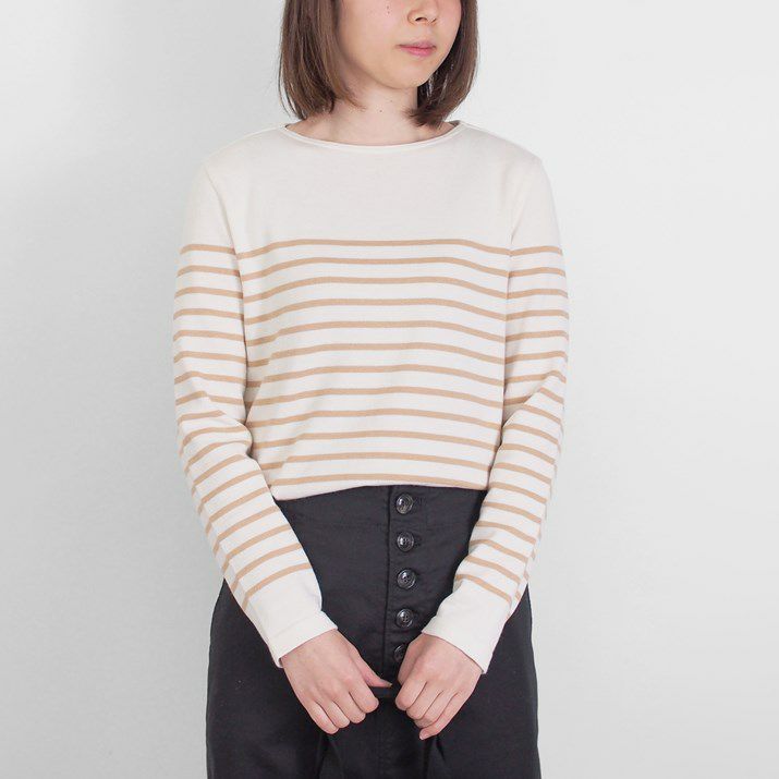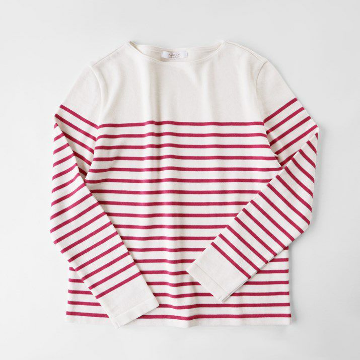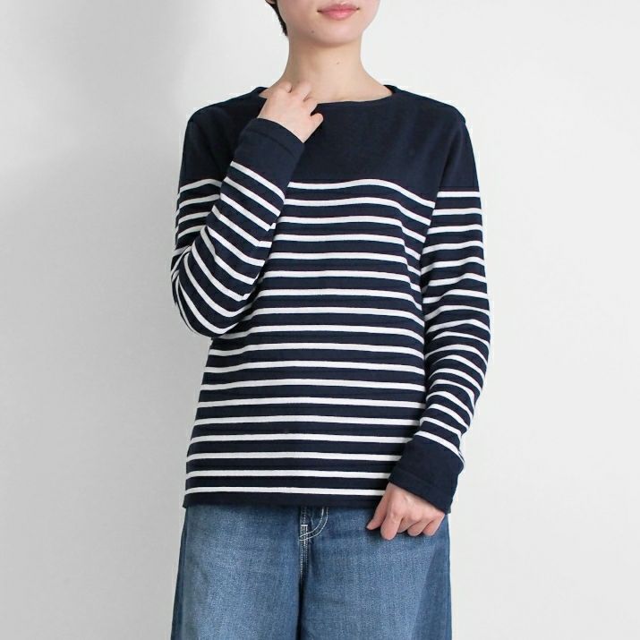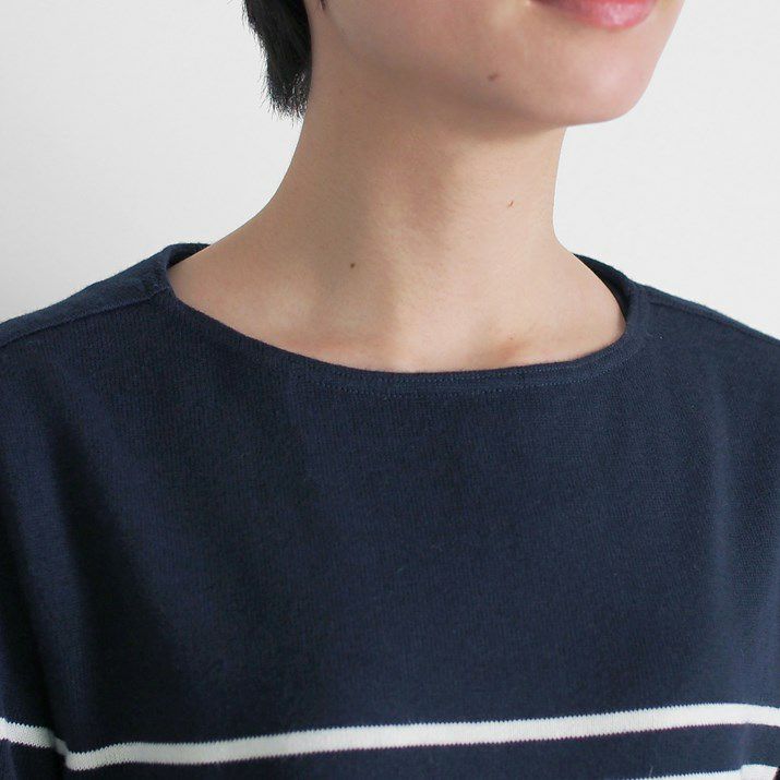 パネルボーダーをあしらった12ゲージ天竺編みのプルオーバー。シルエットと配色のバランスにこだわり、大人っぽく上品な印象に仕上げました。ボーダーの幅や配置を計算することで、すっきり見えつつも程よくカジュアルな雰囲気に。シンプルながら存在感があり、一枚で着てもサマになるデザインです。