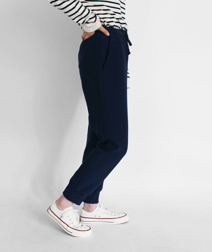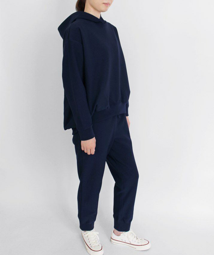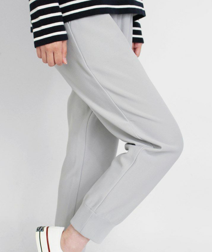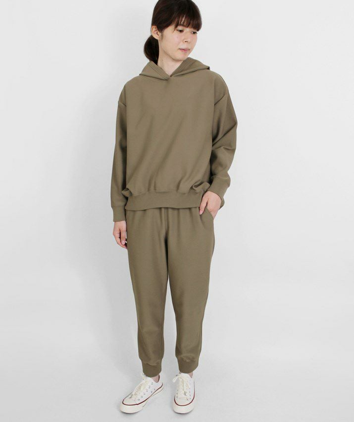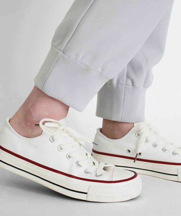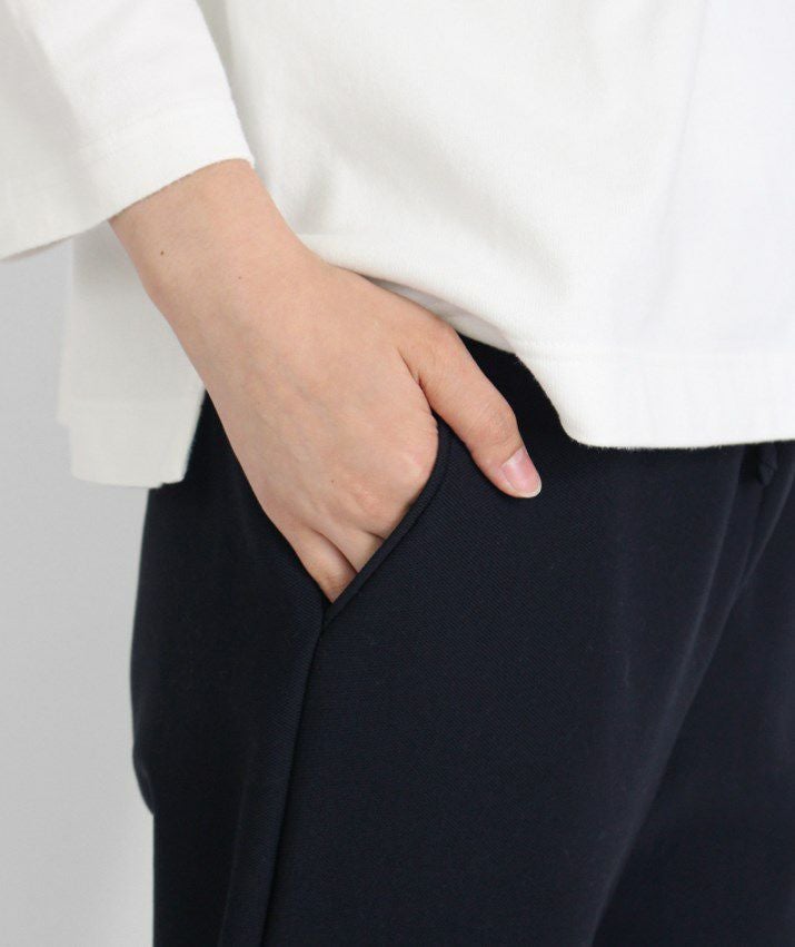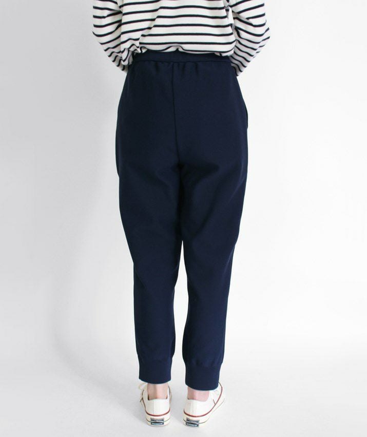 ・裾に向かって細くなっていくテーパードシルエットと、裾リブの引き締め効果ですっきり見えます