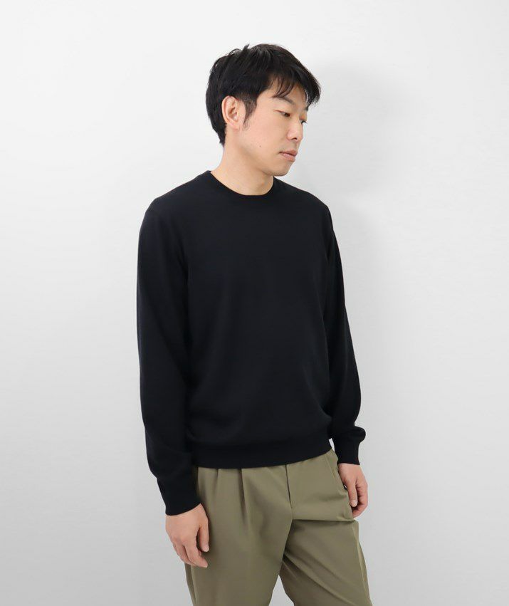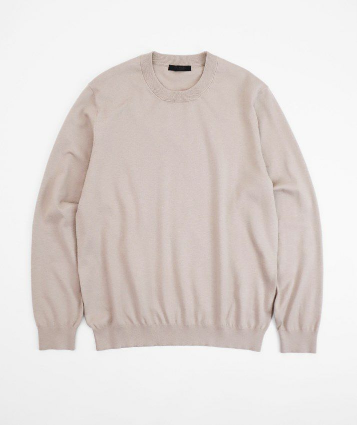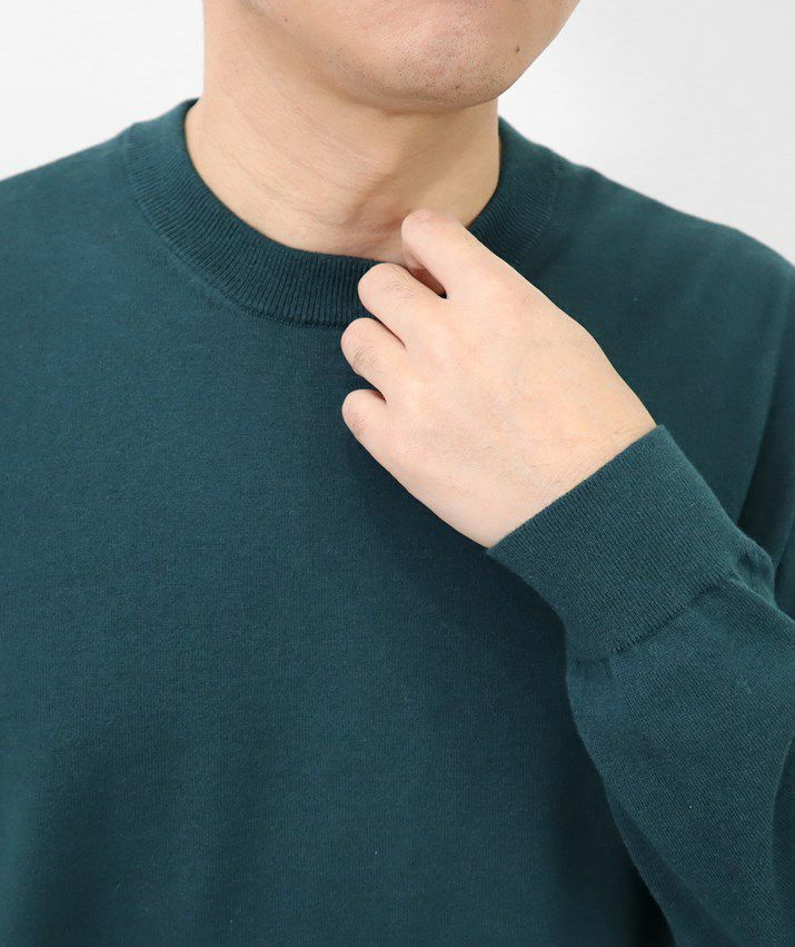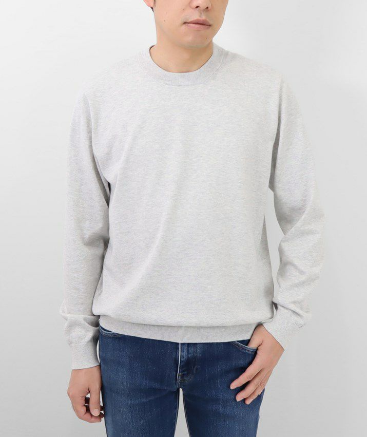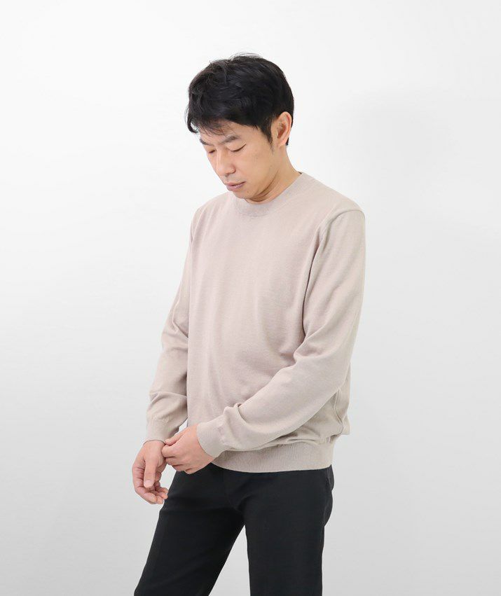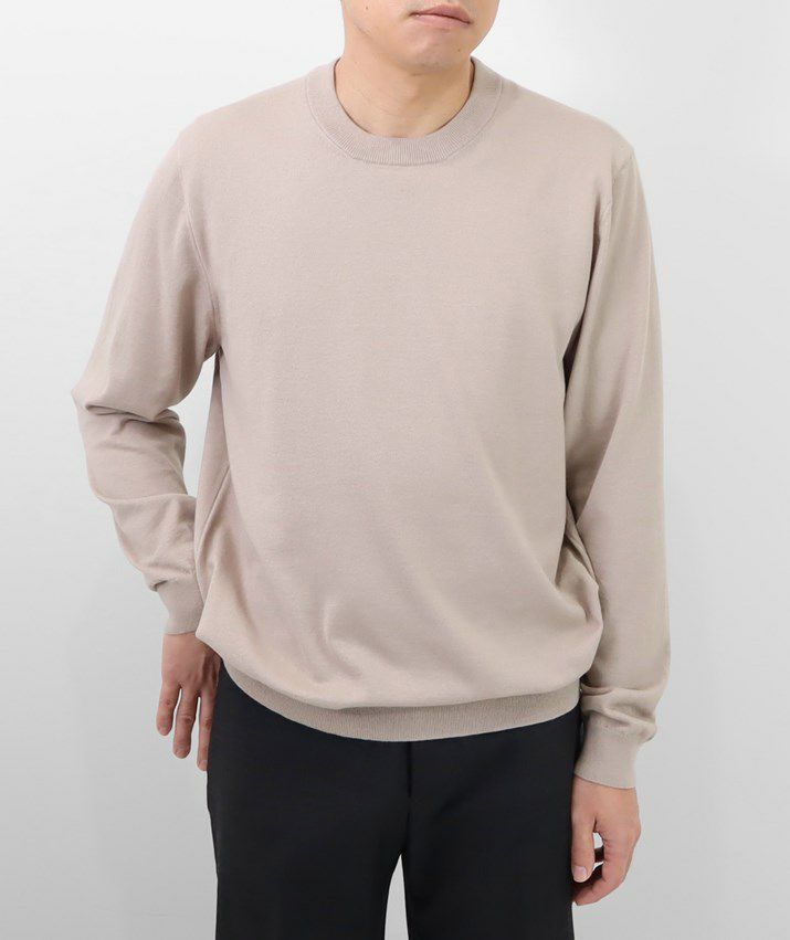 16ゲージの天竺編みで、編み目の目立たないプレーンな表情に。シンプルで飽きのこないベーシックなデザイン。薄手でさらっと着られるので、シーズンレスで活躍する万能な一枚です。