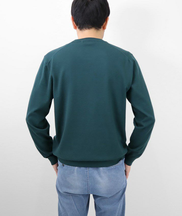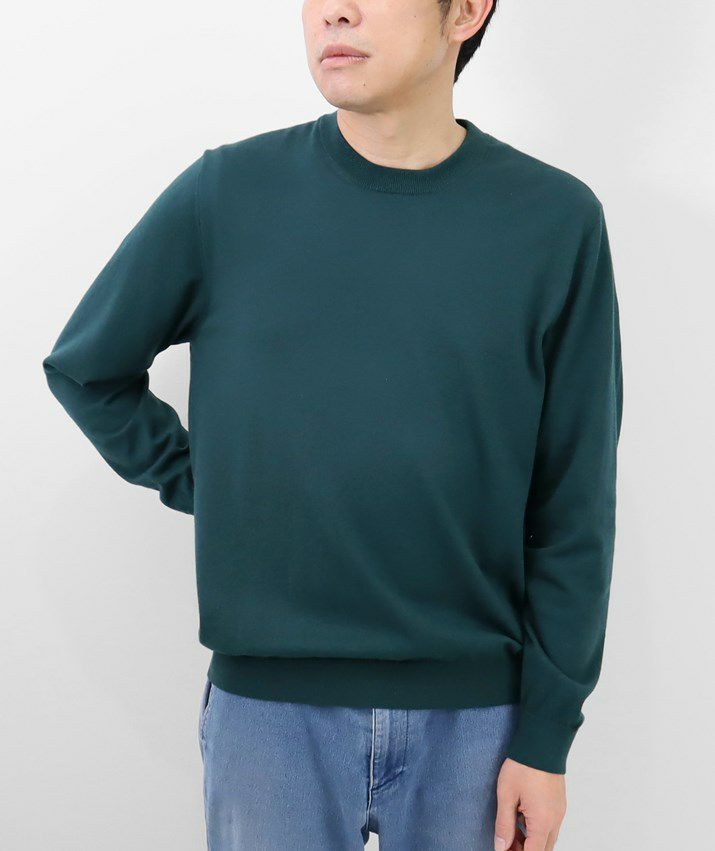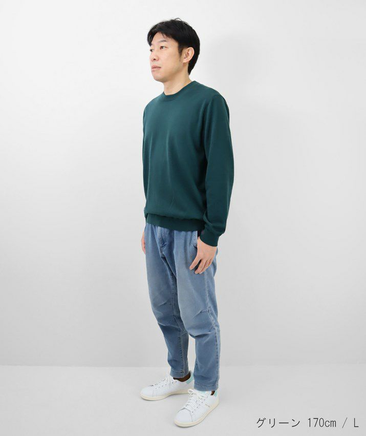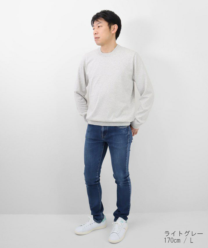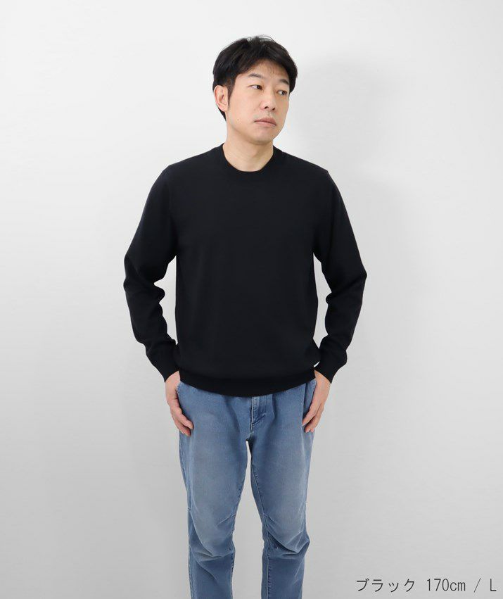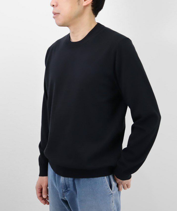 16ゲージの天竺編みで、編み目の目立たないプレーンな表情に。シンプルで飽きのこないベーシックなデザイン。薄手でさらっと着られるので、シーズンレスで活躍する万能な一枚です。