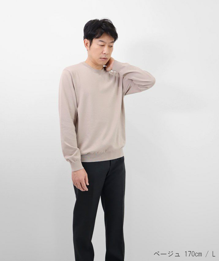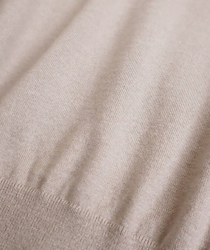 しなやかなカシミヤとなめらかな超長綿をブレンドしたコットンカシミヤ素材を使用。ふんわりやわらかな風合いと軽やかな着心地が魅力です。ご自宅で手洗いできるのも嬉しいポイント。