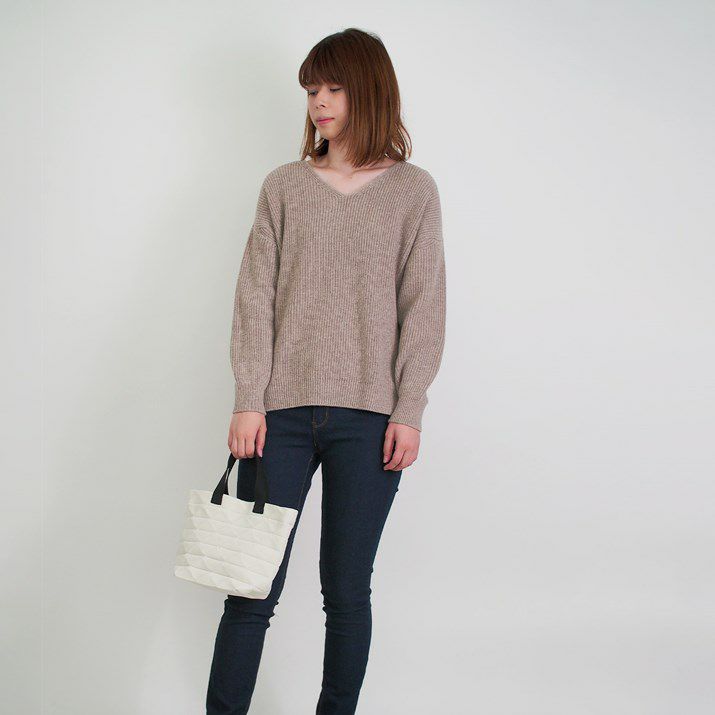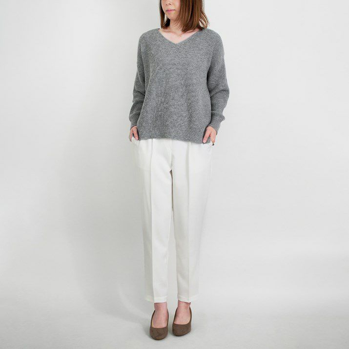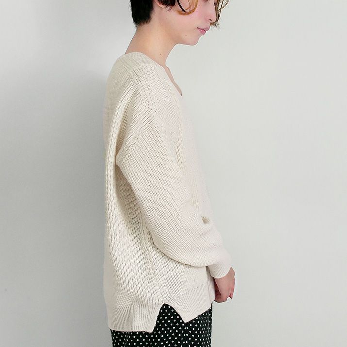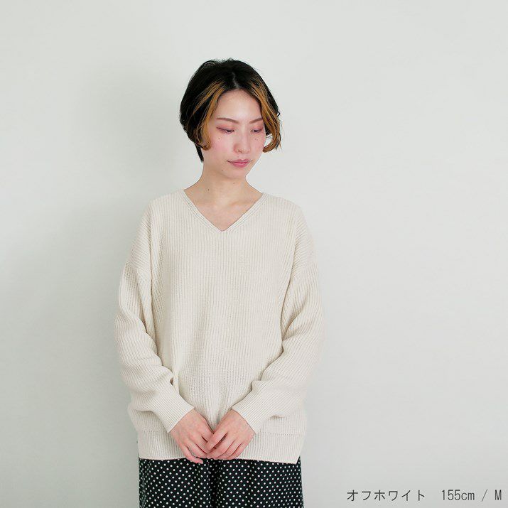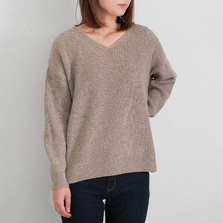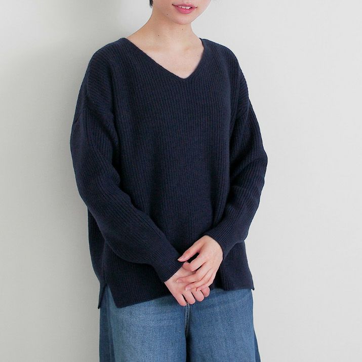 カシミヤ100%畦編みVネックセーター