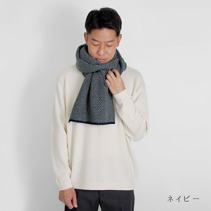 カシミヤ100%ナナメライン柄マフラー