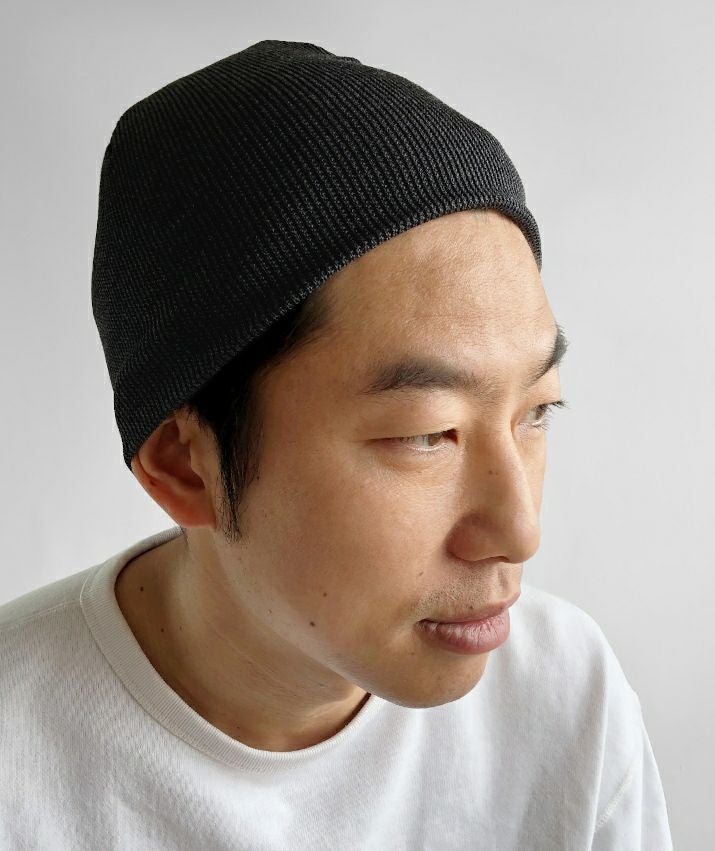 14ゲージのしっかりとした厚みのリブ編みニットキャップ。伸縮性に優れ、ほどよいフィット感のやさしいかぶり心地です。ユニセックスで使えるシンプルなデザインで、流行に左右されず、長くご愛用いただけます。