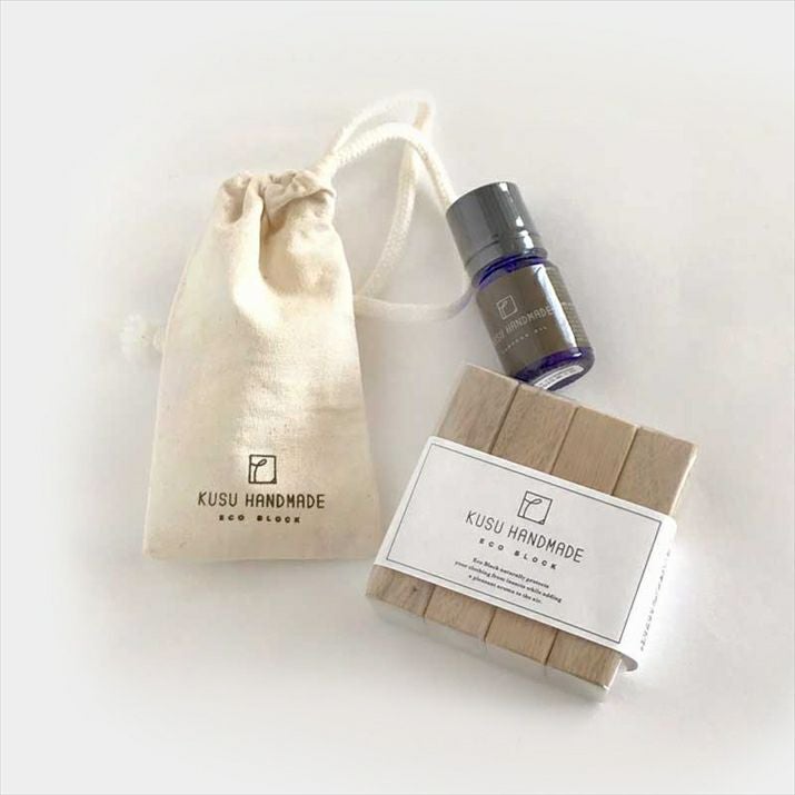【注意事項】 *他の防虫剤と一緒に使用しないでください。衣類を変色させる場合があります。 *天然木を使用しておりますので、それぞれ色合いや風合いが異なります。 *ブロックの黒い斑点は、楠特有のもので汚れではありません。 *カンフルオイルは、純度の高いエッセンシャルオイルです。原液を飲んだり、直接肌につけたりしないでください。 *プラスチックやマニキュアを溶かす場合がありますのでご注意ください。 *ビンからオイルが出にくかったり、大量に出たりすることがありますので、ご注意ください。 *オイルがこぼれた場合はすぐにティッシュなどで拭き取ってください。 *直射日光・火気を避け、お子様の手の届かないところで使用、保管してください。 *高血圧、ぜんそく、てんかん、アレルギー体質の方、敏感肌の方、妊娠中の方、乳幼児などはご使用をお控えください。 *使用中に気分が悪くなったり、目や鼻に強い刺激を感じた場合は、ただちに使用を止め、空気の入れ換えをしてください。 *アロマポットでご使用になる場合は、水で1%以下に希釈してご使用ください。 *気温が下がるとオイルのカンフル成分が結晶化して白い沈殿物ができますが、品質には問題ありません。 *万が一飲み込んだ場合は、すぐに水を飲んで応急処置をし、医師の診断を受けてください。