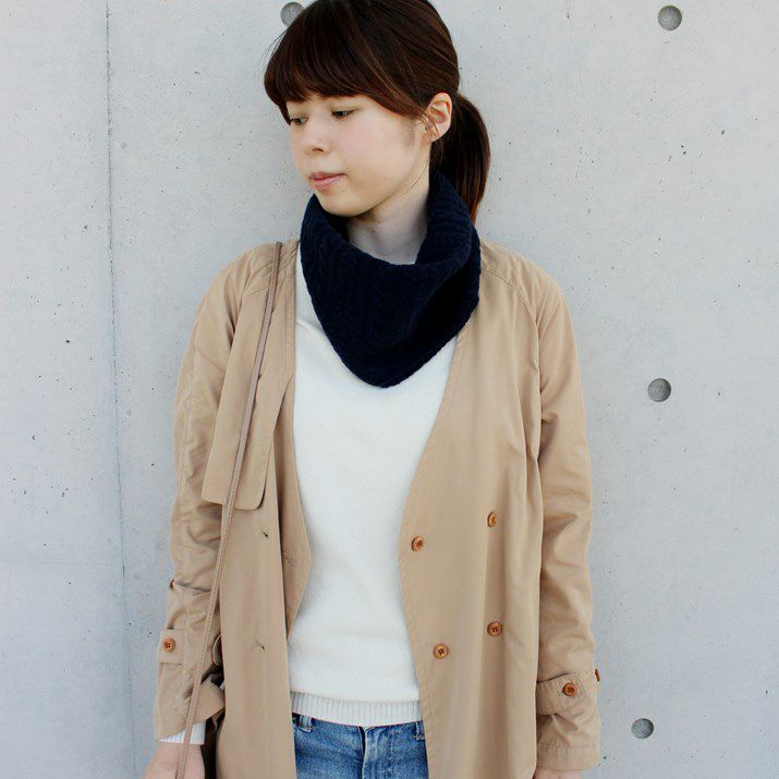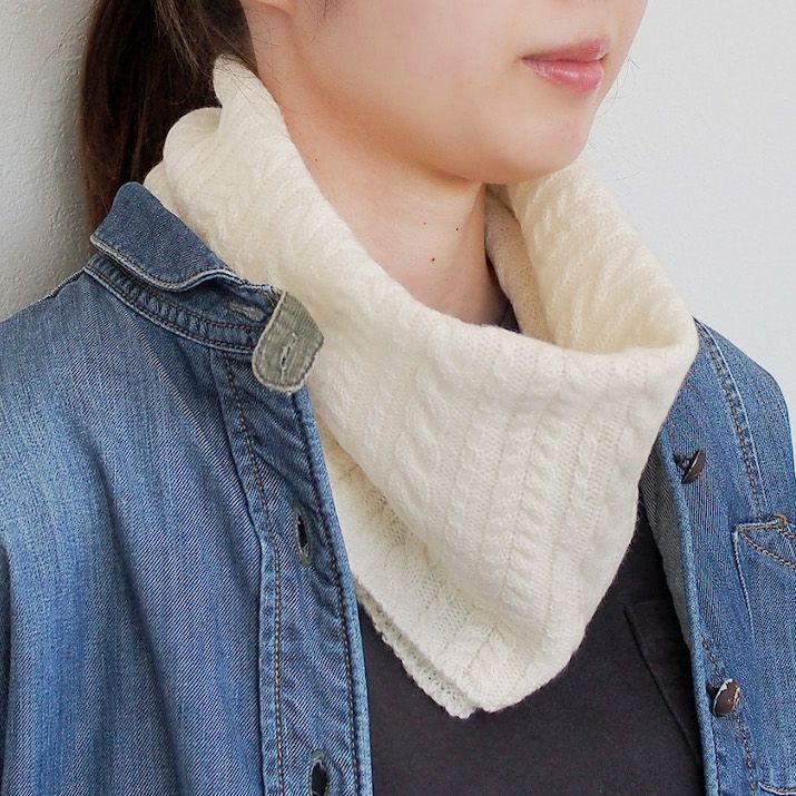 ・カシミヤ100%素材を使用した、軽くてあたたかいケーブル編みネックウォーマー