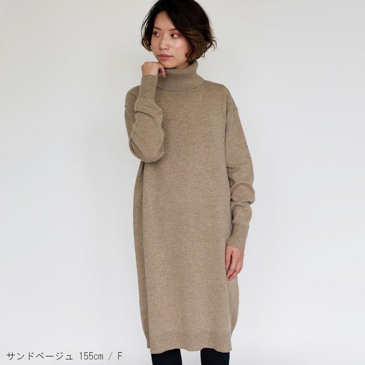 ・カシミヤ100%素材を使用した、軽くてあたたかいタートルネックのワンピース