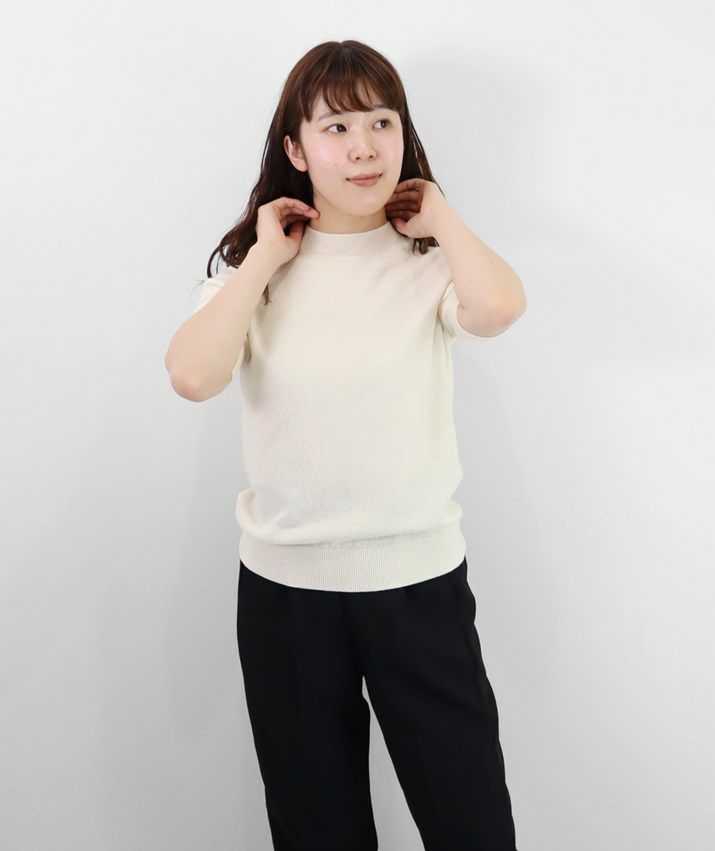 編地は12ゲージの天竺編み。アクセサリーが映える上品なハイネックは、程よい高さで顔まわりをすっきり見せてくれます。Tシャツのように気軽に着られて、気温差のある季節の変わり目にも重宝します。無駄をそぎ落としたシンプルで洗練されたデザインで、流行に左右されず、長く着られる一枚です。