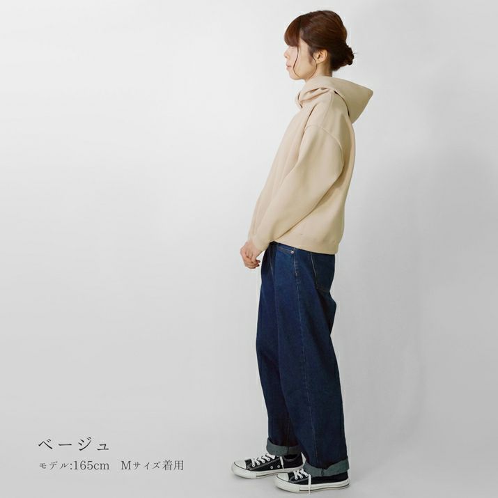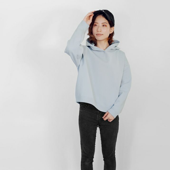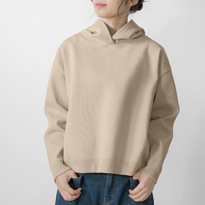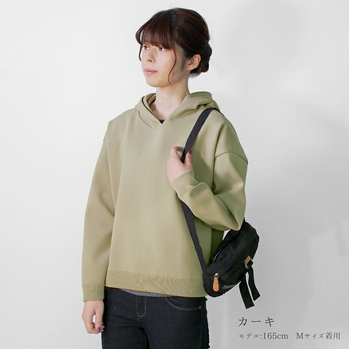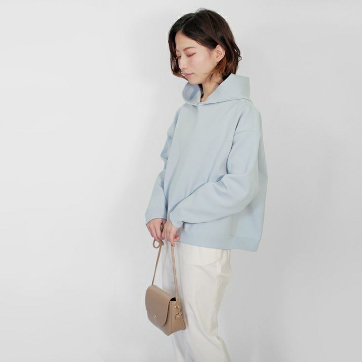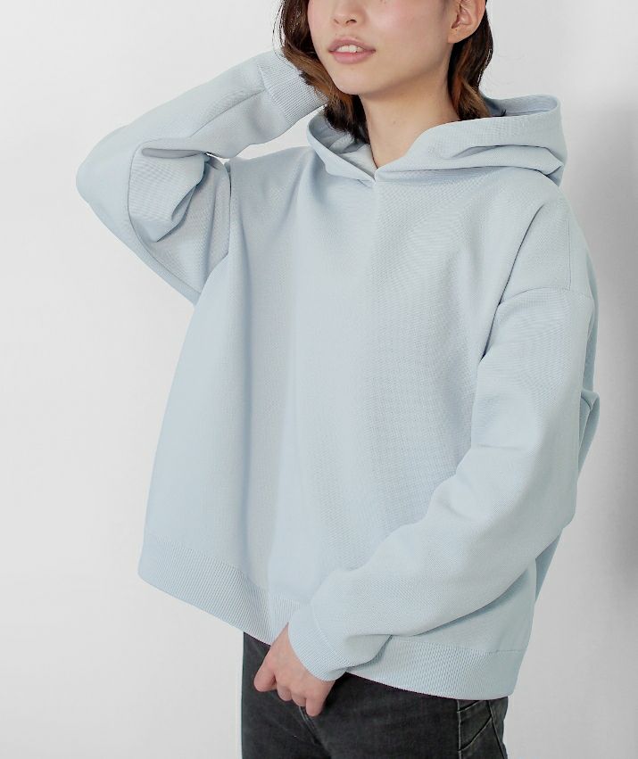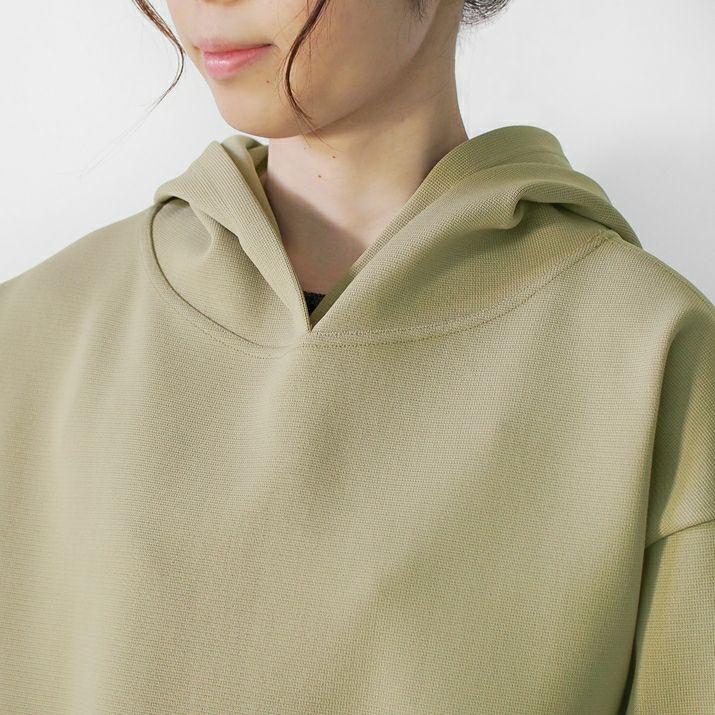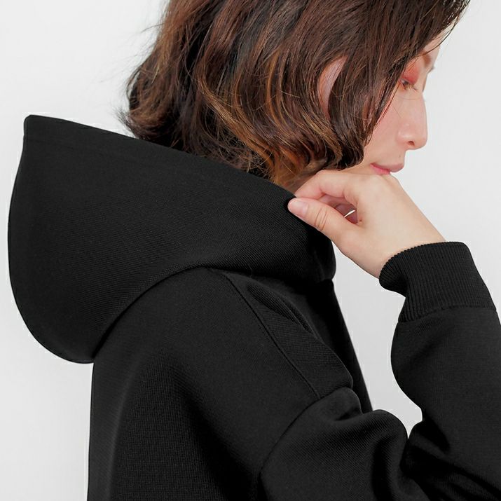 ・裏毛素材のパーカーよりも軽く、ハリの出る素材と編み方で、より立体的に仕上げました