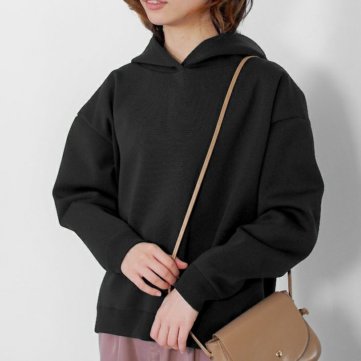 ・ポリエステル素材のニットパーカー