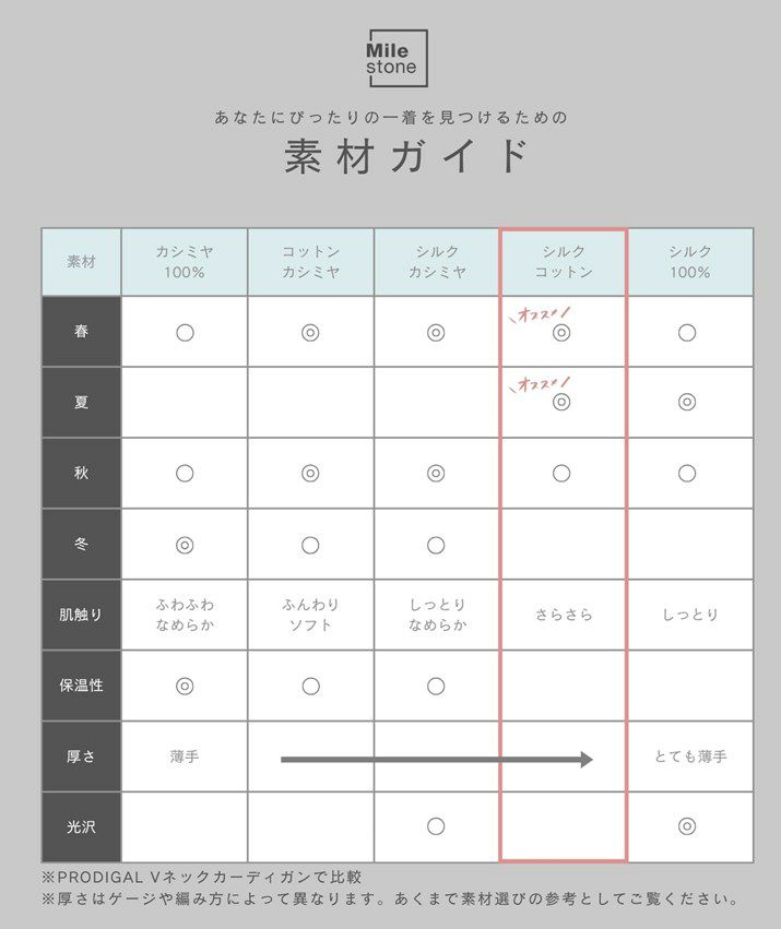 しっとりとしなやかなシルクと、ソフトな風合いのコットンをブレンドしたシルクコットン素材を使用。さらりとした肌触りで、汗ばむ季節も快適に着ていただけます。吸湿性・放湿性に優れており、汗をかいてもベタつきにくく、サマーニットにぴったりの清涼感。ご家庭で手洗いができるので、お手入れも簡単です。