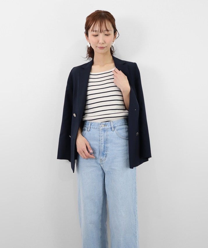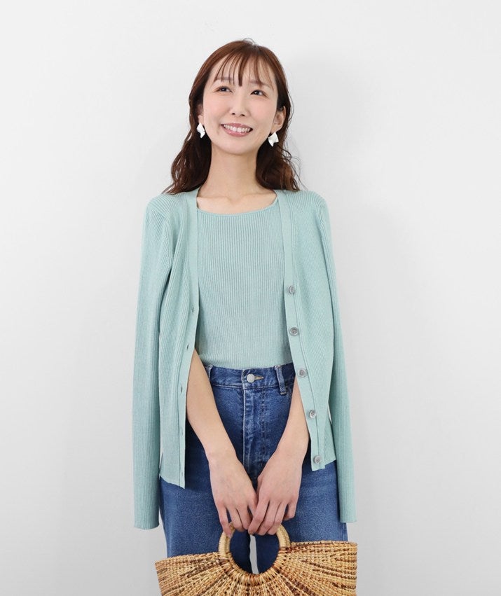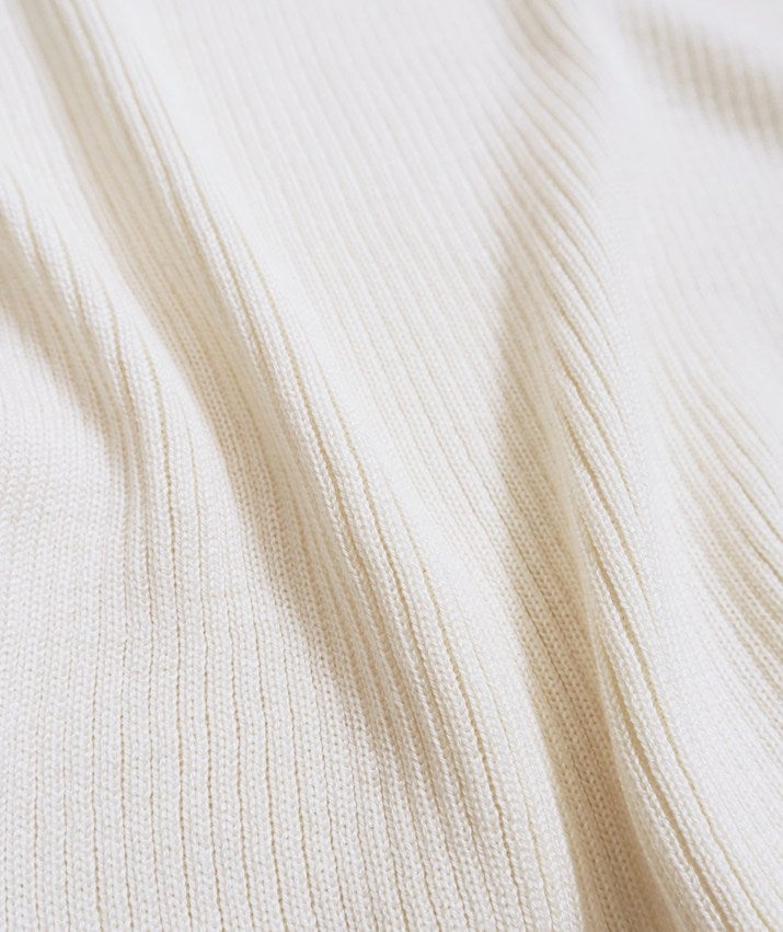 一枚でさらっと着こなすのはもちろん、ジャケットのインナーとしても活躍します。同素材のVネックカーディガンやリブカーディガンとのコーディネートもおすすめ。ハイウエストボトムやワイドパンツなど、ボリューム感のあるボトムスとの相性も抜群です。