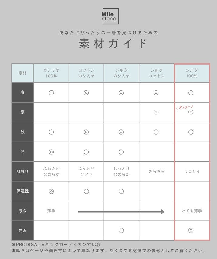 なめらかで光沢があり、しっとりとした肌触りのシルク100%素材を使用。肌なじみが良く、吸湿性・放湿性などの機能性にも優れているのが特徴です。保湿効果がありながら通気性が良くさらっと快適に着ていただけます。ご自宅で手洗いが可能でイージーケアなのも嬉しいポイント。