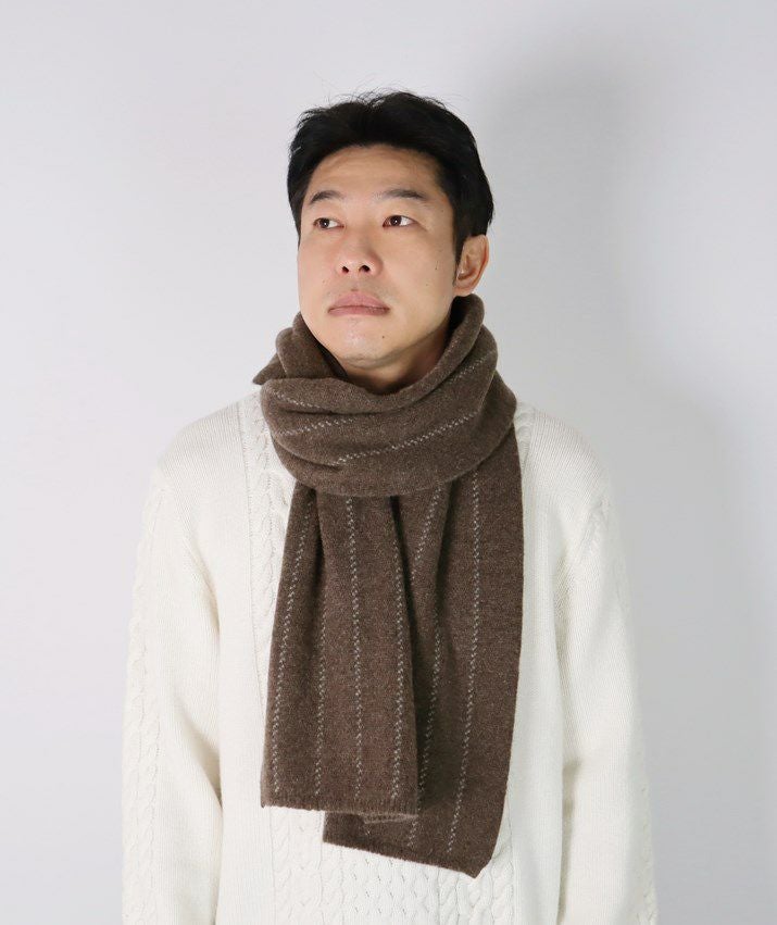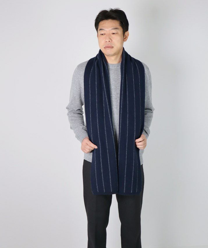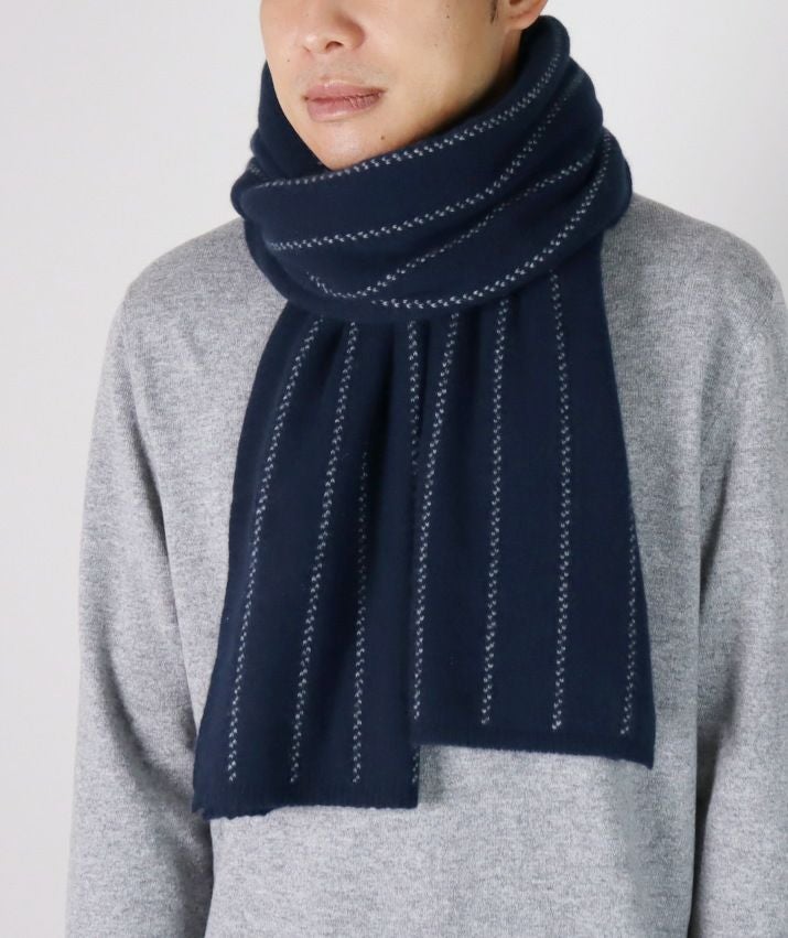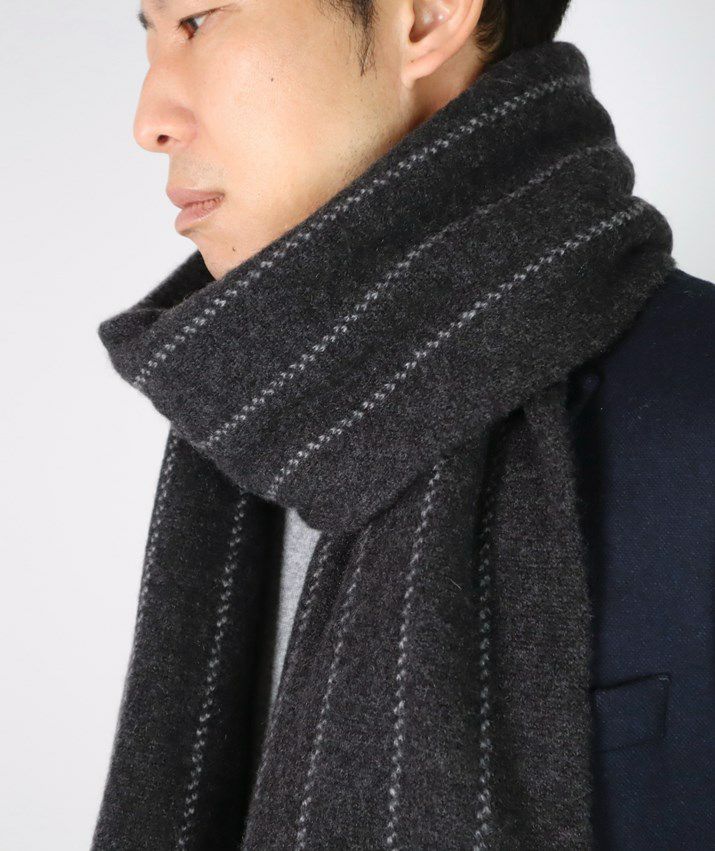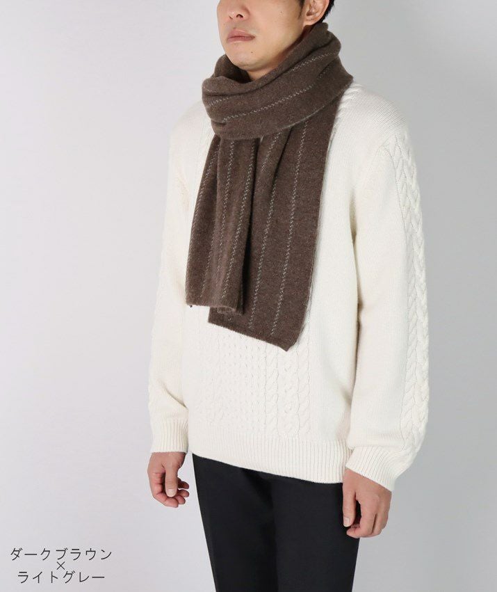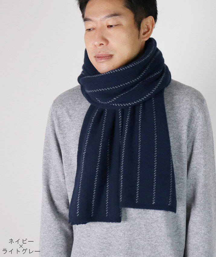 ・カシミヤ100%素材を使用した、軽くてあたたかいストライプ柄マフラー