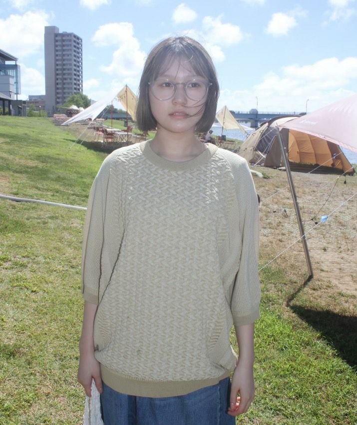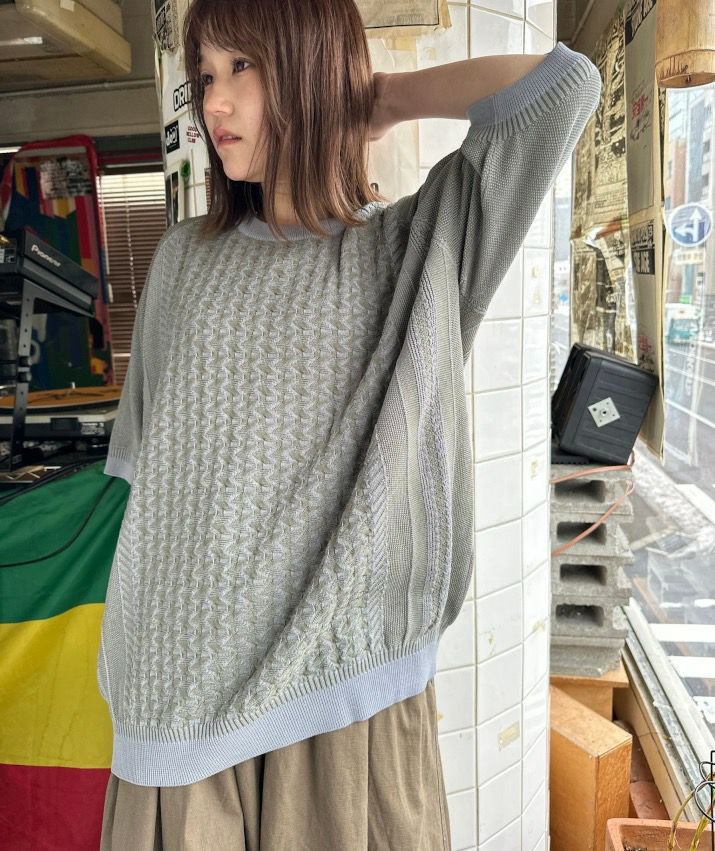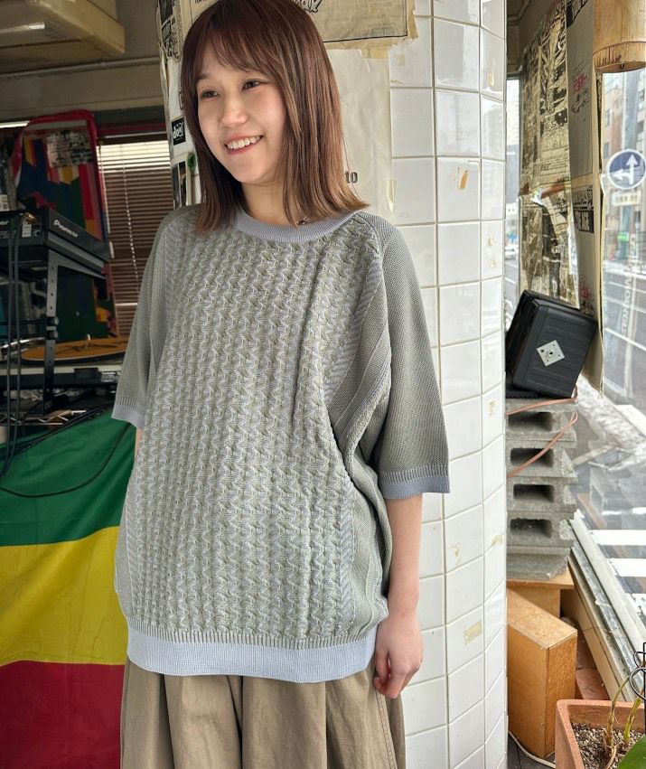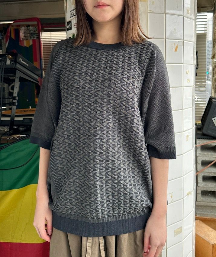 ニットテキスタイルを使った男女兼用の半袖プルオーバーです。