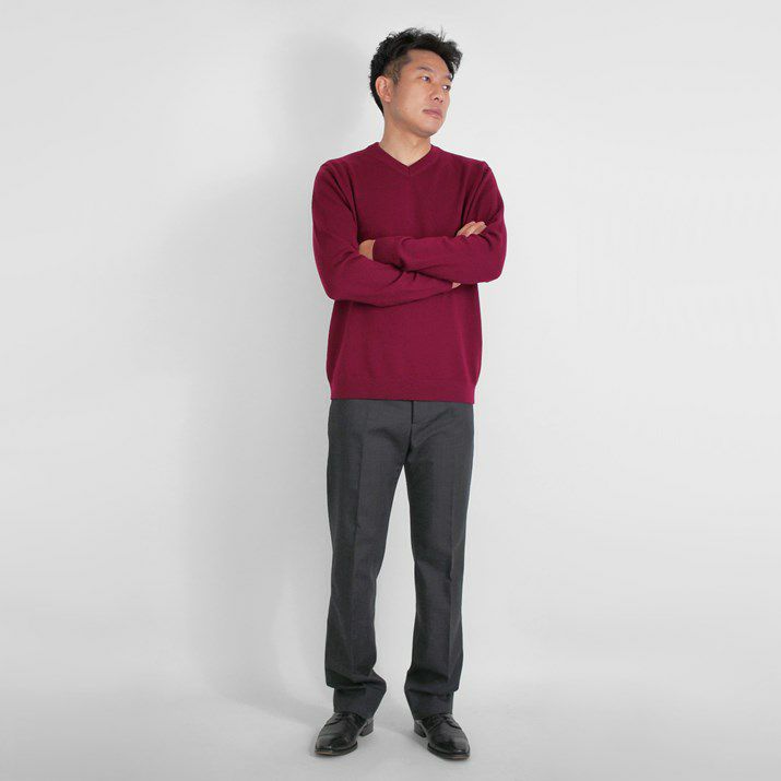 ウール100%メンズVネックプルオーバー