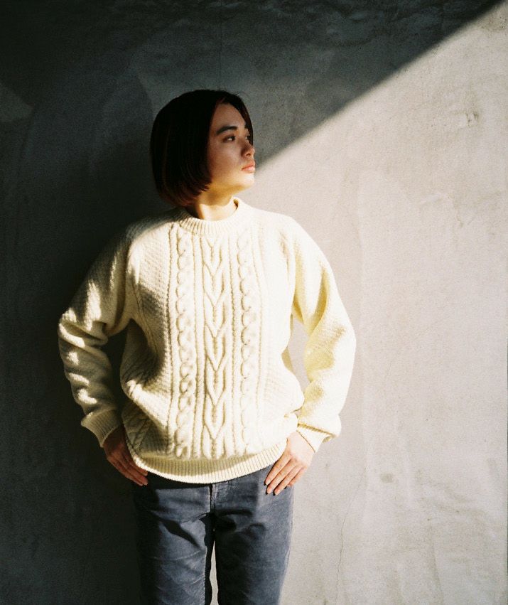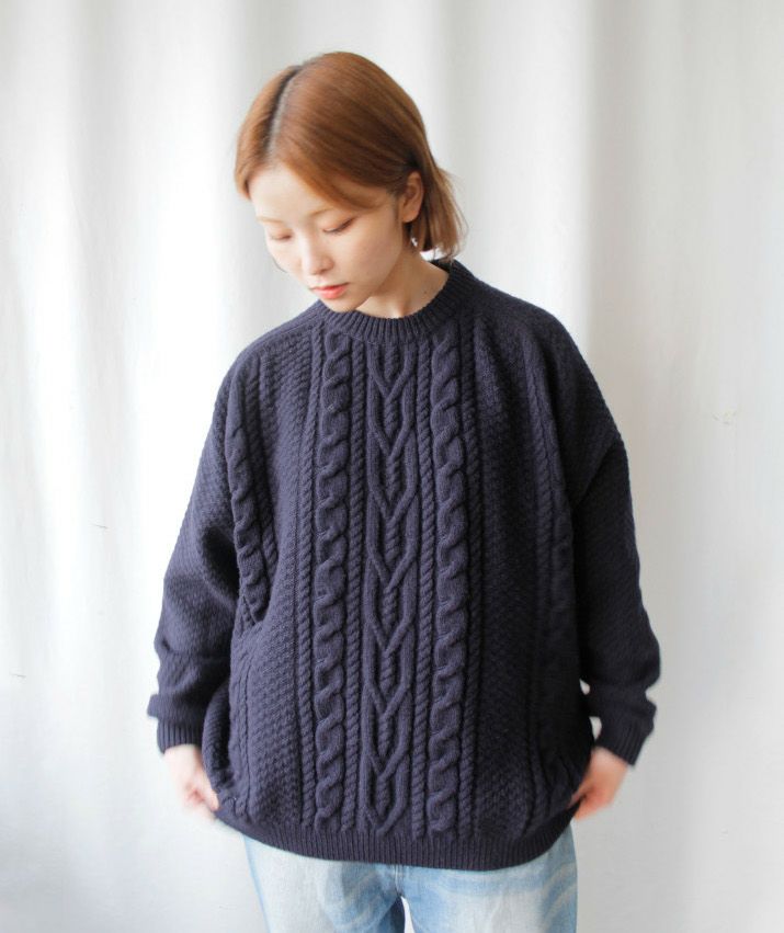 ウール100%メンズタック編みニット セーター