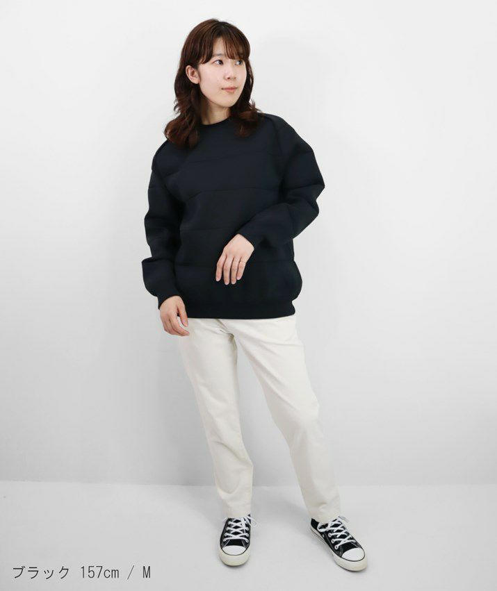・大きめサイズを選ぶとより立体的で個性的なセーターに、ぴったりサイズでは立体感が抑えられるのでシンプルなプルオーバーとして、サイズ選びによっても様々な着こなしができます