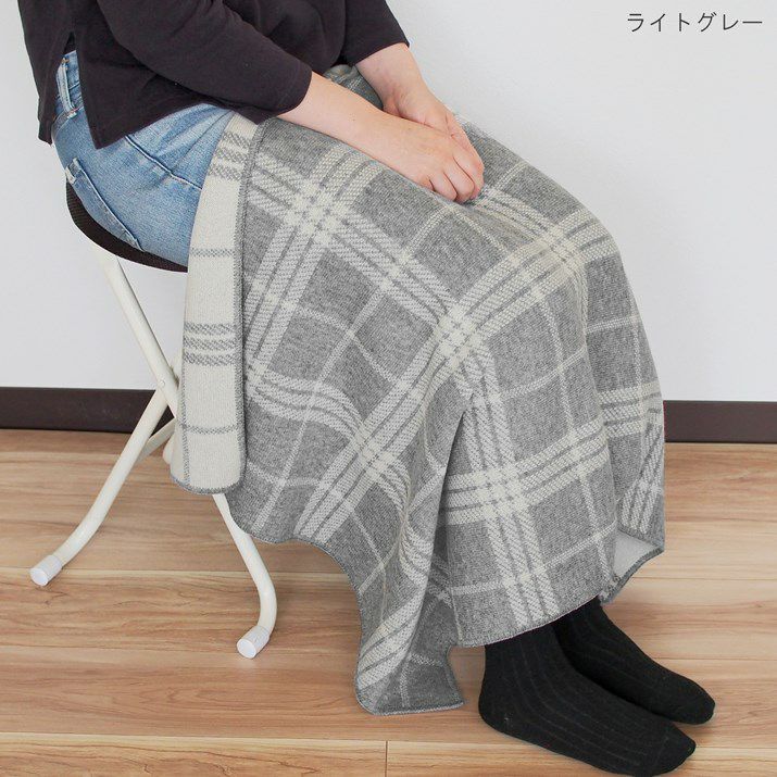 カシミヤ100%チェック柄ブランケット