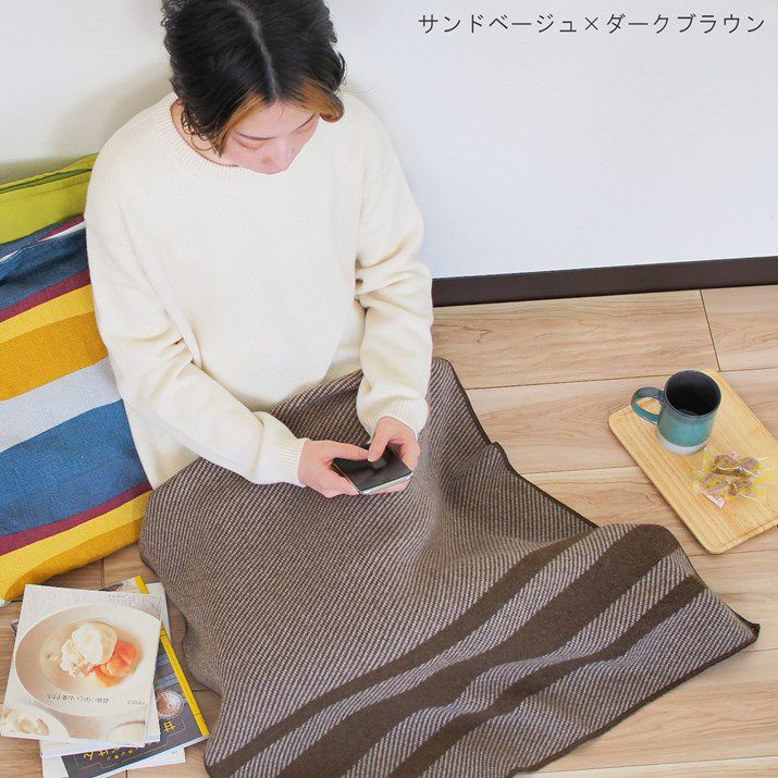 カシミヤ100%ナナメライン柄ブランケット