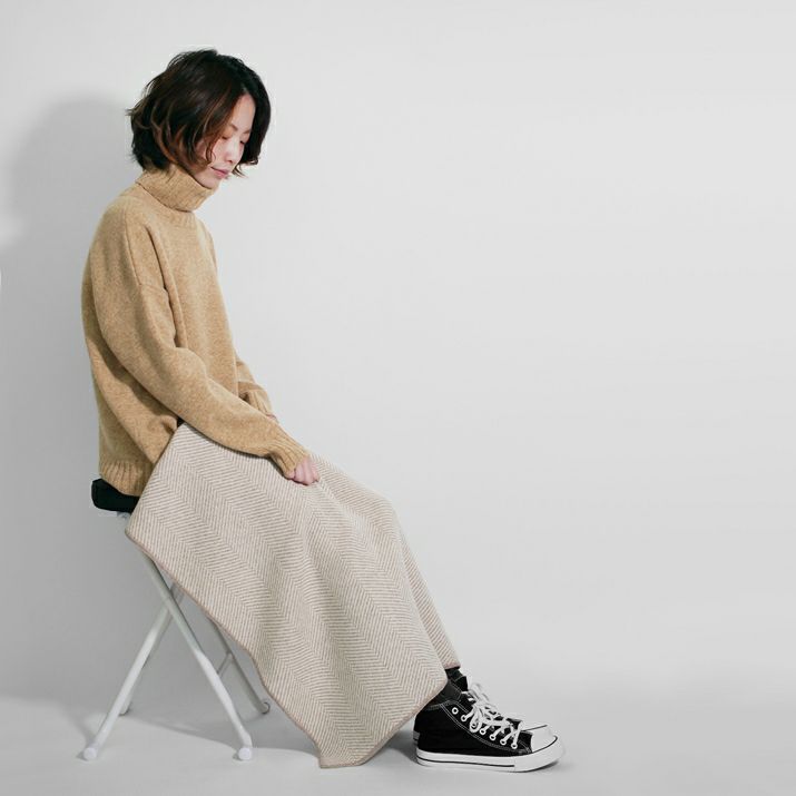 カシミヤ100%ヘリンボーン柄ブランケット