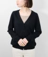 シンプルで飽きのこないベーシックなデザインのVネックカーディガン。編地は14ゲージの天竺編み。しなやかで細かく均一な編み目で、一目見るだけで上質感が伝わる仕上がりに。薄手でやや透け感があります。すっきりとしたシルエットはきちんと感のある印象で、オフィスカジュアルにもぴったり。