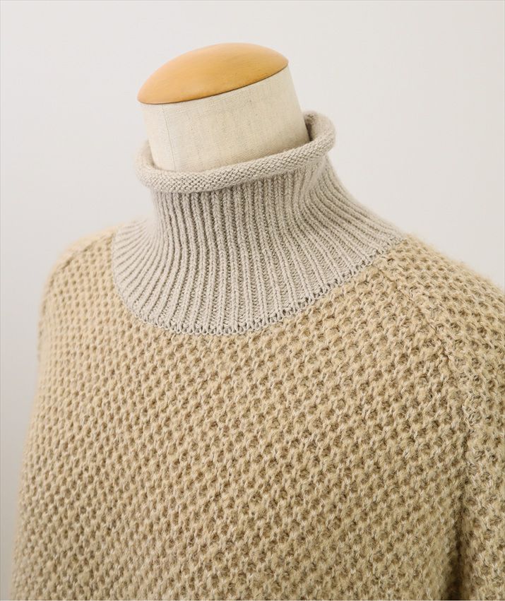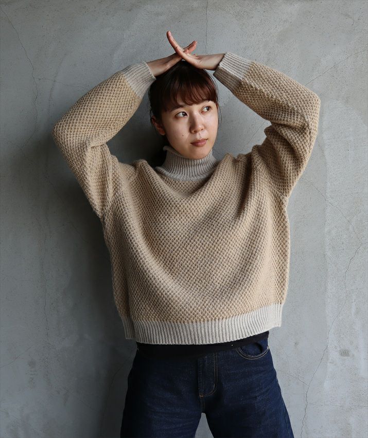 表にふわっとしたタムヤーン、裏にウール混糸を使用。