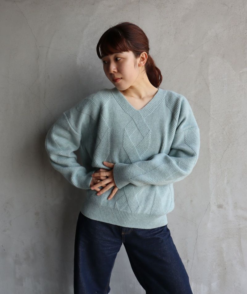 シンプルながらも表情豊かな編み柄で、一枚でスタイリングのポイントになるセーターです。