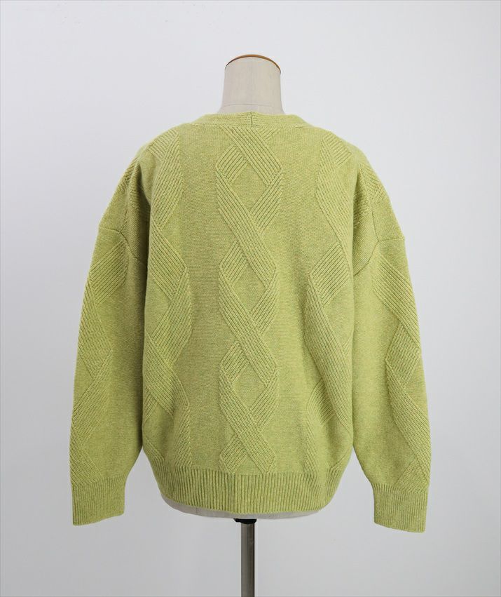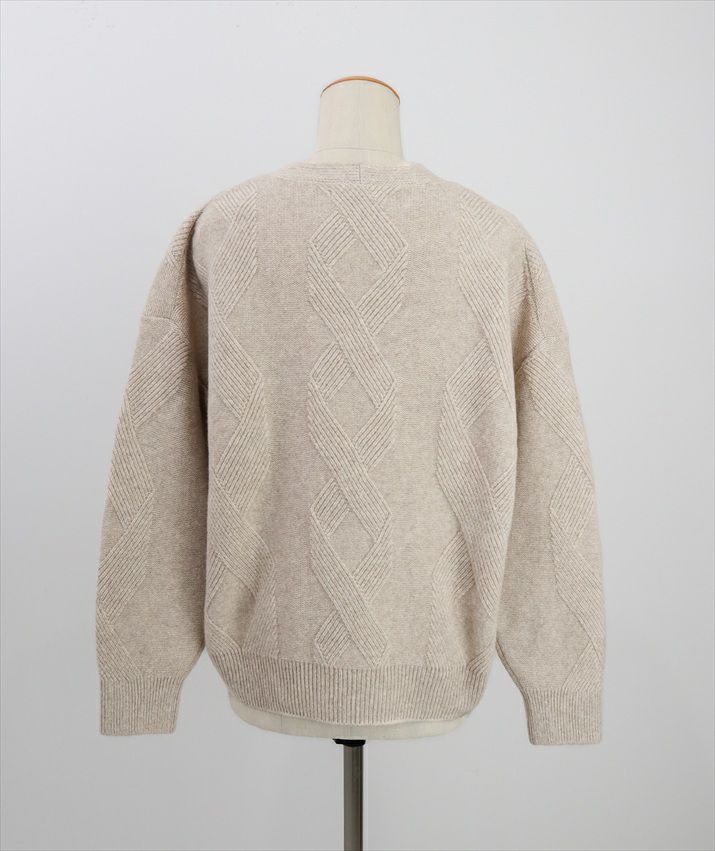 7ゲージで編み立てた、折り重なったテープのような編み柄が印象的なプルオーバー。