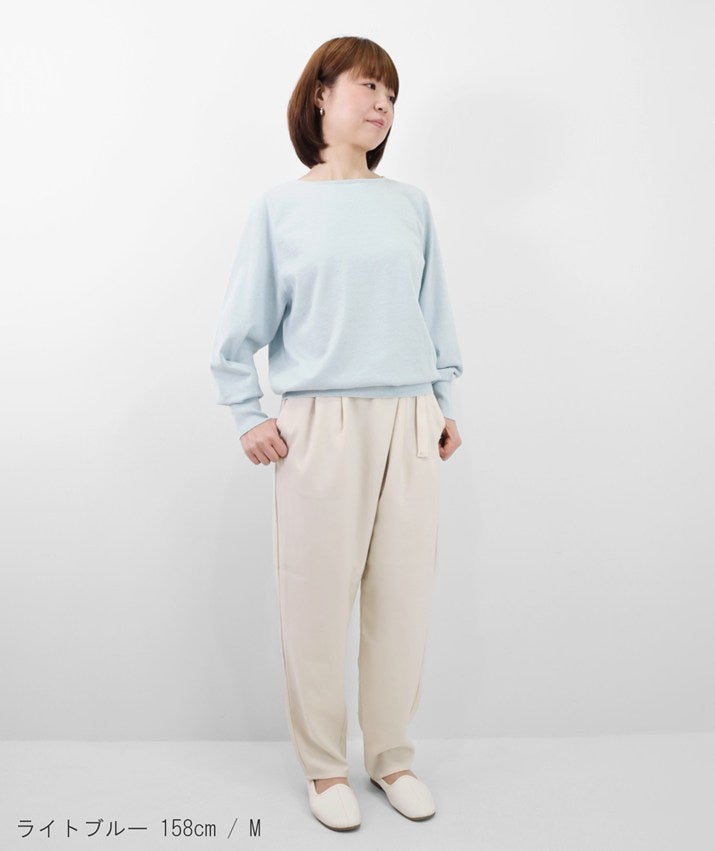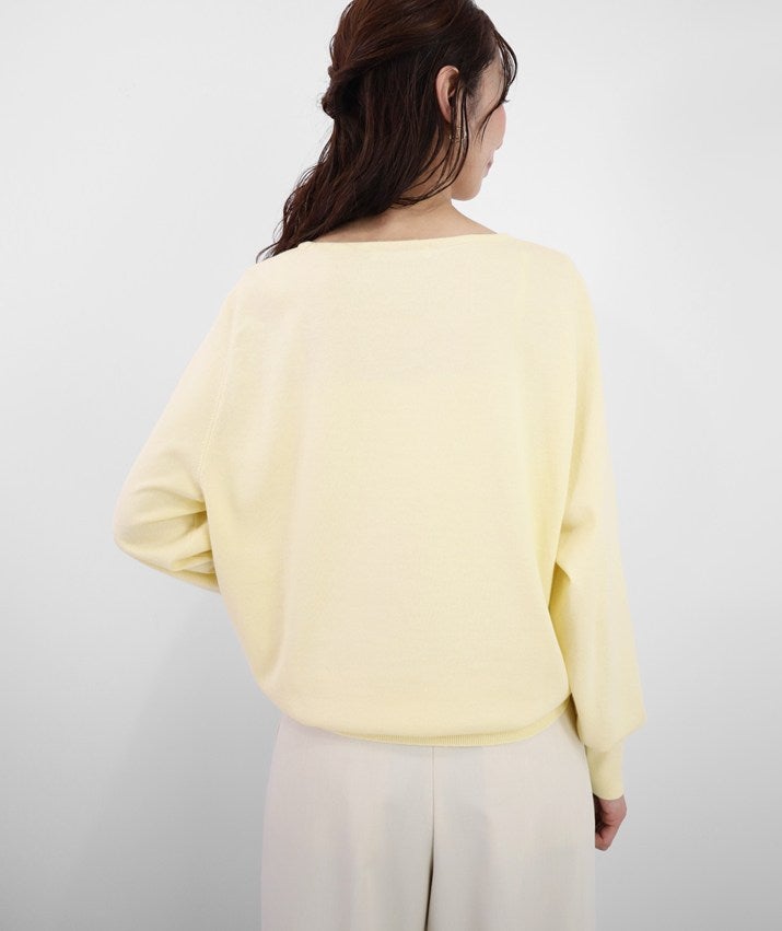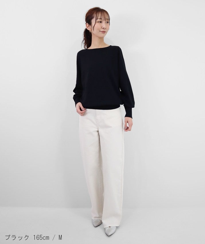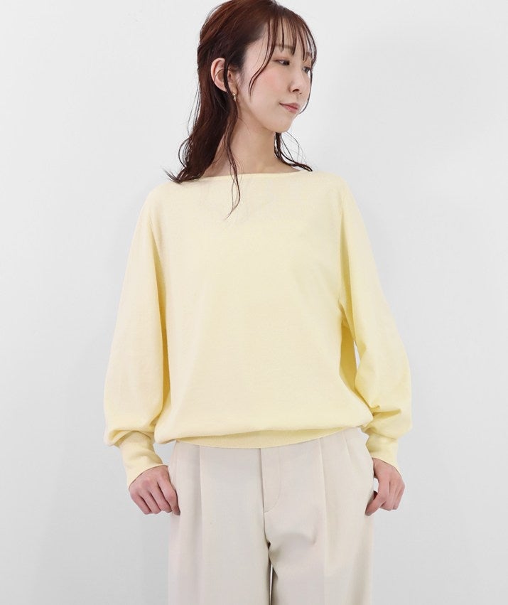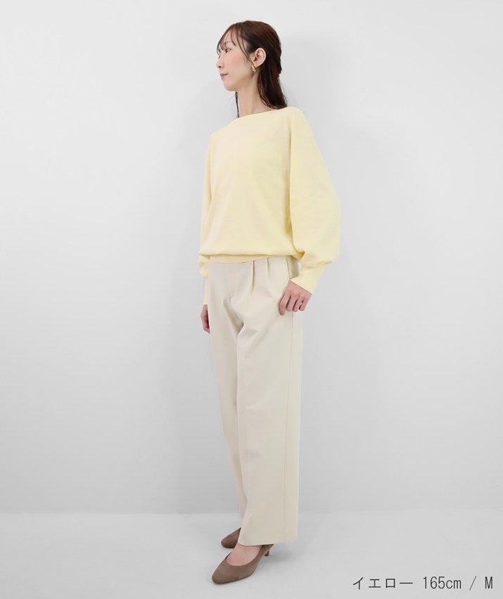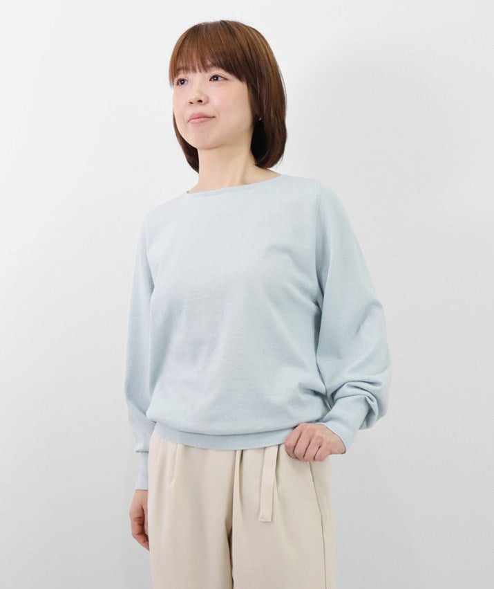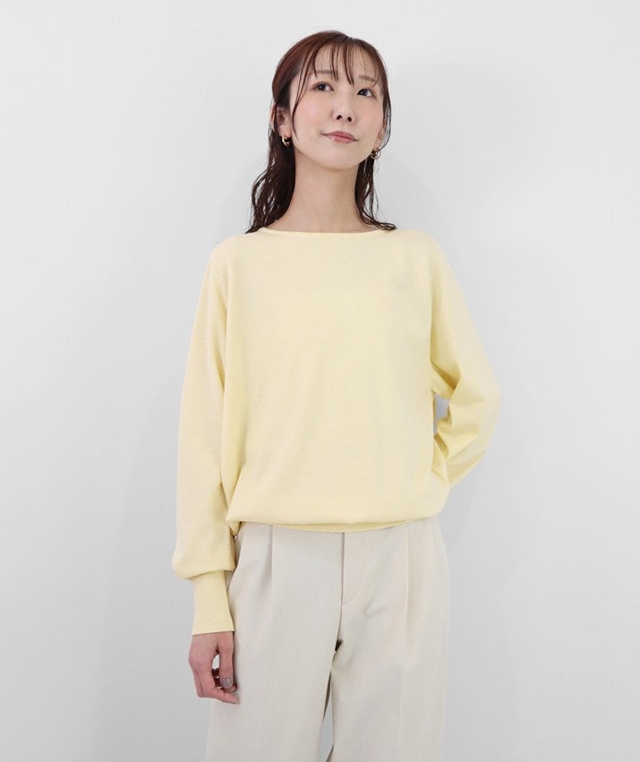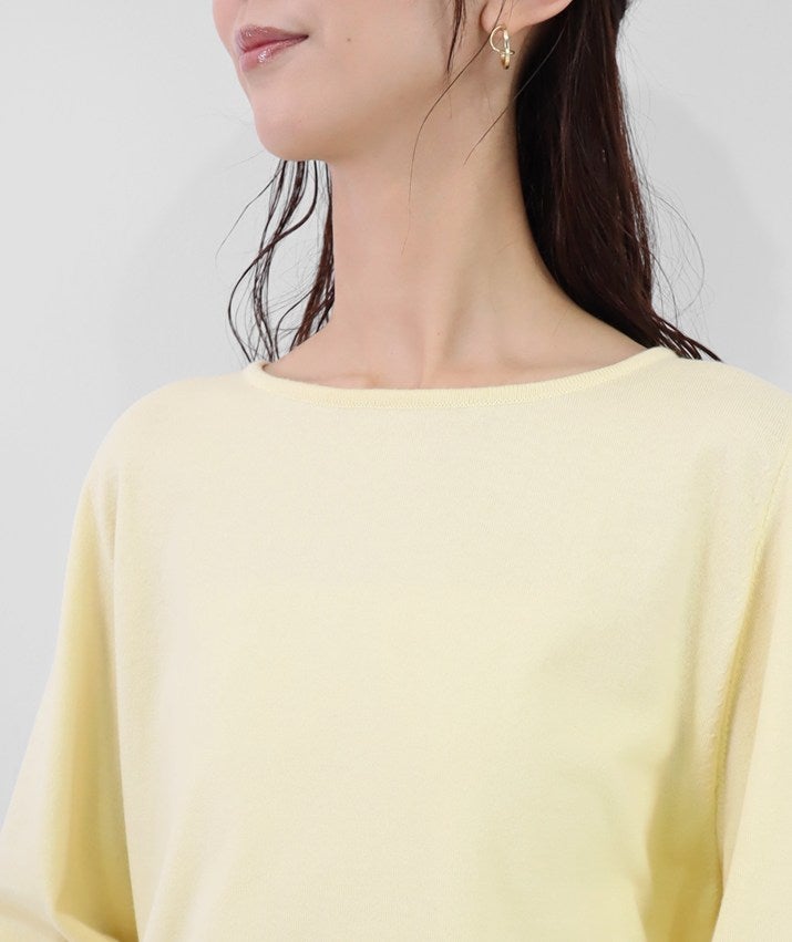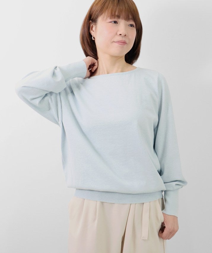 デコルテを美しく見せるボートネックは、開きすぎず上品なバランスに。身体のラインを拾いにくい、リラックス感のあるシルエットで、心地よく着ていただけます。