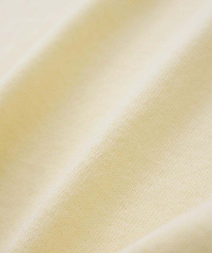 しなやかなカシミヤとなめらかな超長綿をブレンドしたコットンカシミヤ素材を使用。ふんわりやわらかな風合いと軽やかな着心地が魅力です。自宅で手洗いできるので、お手入れも簡単。