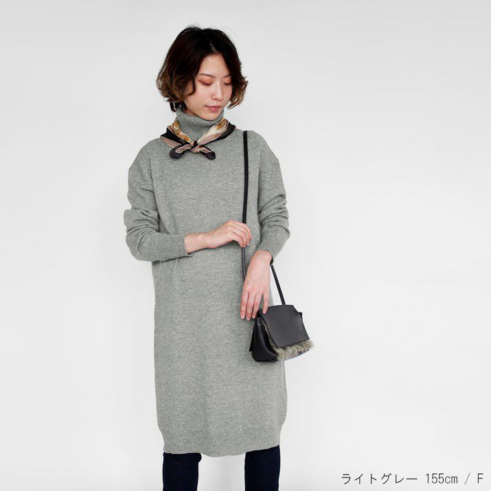 カシミヤ100%タートルネックワンピース