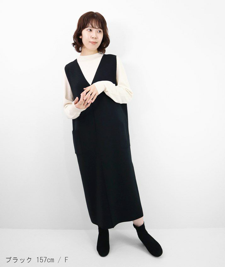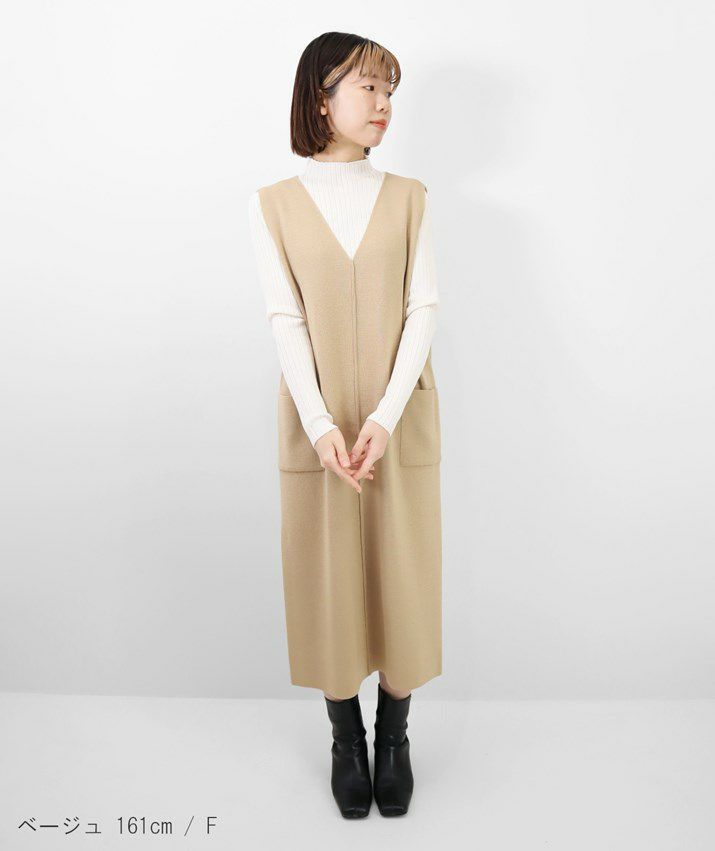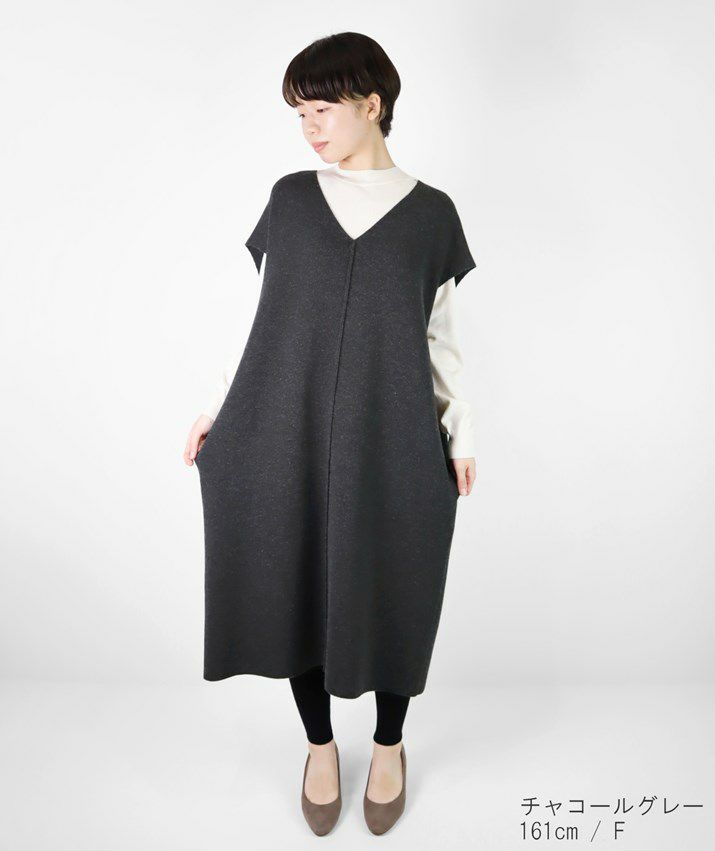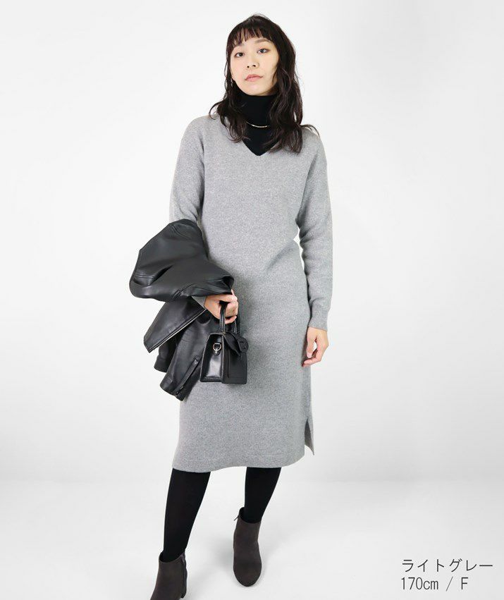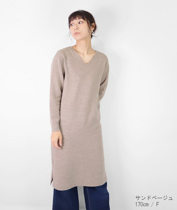 カシミヤ100%Vネックワンピース