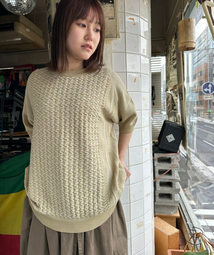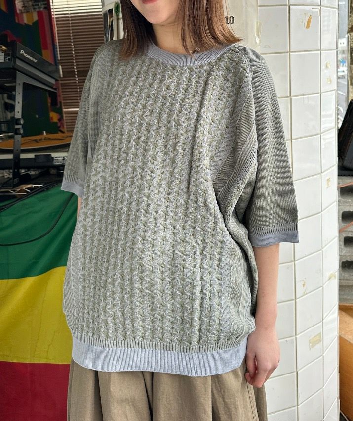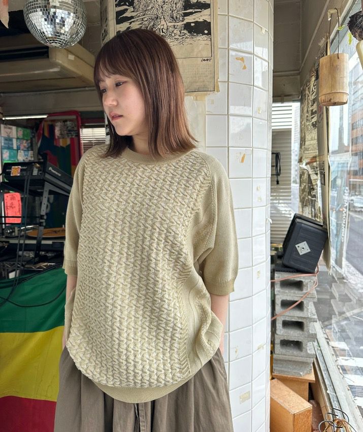ニットテキスタイルを使った男女兼用の半袖プルオーバーです。