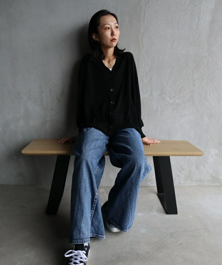秋のはじまりにぴったりなレイヤードしやすい薄手のカーディガンです。